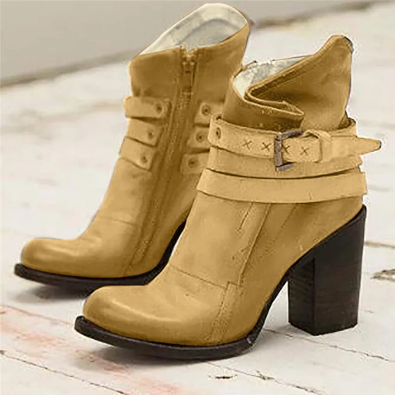 Zapatos De Mujer; модная женская обувь на плоской подошве в стиле ретро; Удобная нескользящая обувь в римском стиле на толстом каблуке; короткие ботинки; цвет желтый; большие размеры