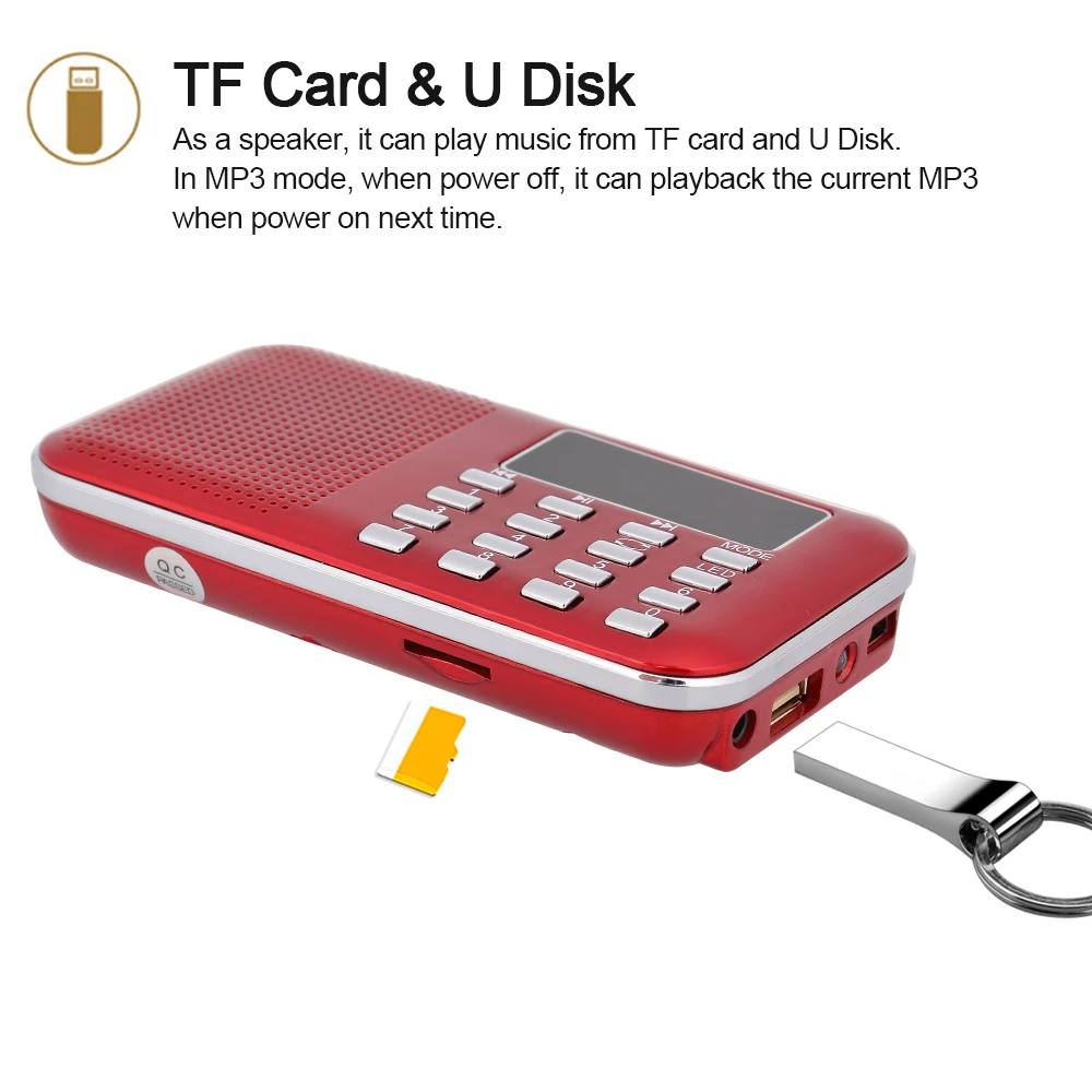 С высоким качеством fm-радио сигнала, мини-радио динамик может осуществлять поиск каналов автоматически. Кнопки для выбора MP3 и fm-радио легко. Прямые манипуляции и быстро начинаются.