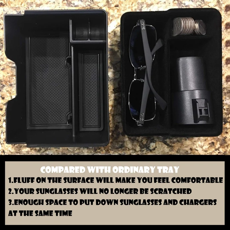 [Идеальный дизайн]: Эта Флокированная коробка расположена в центральной консоли. Это не влияет на емкость нижней части консоли и не влияет на открытие и закрытие крышки на консоли.