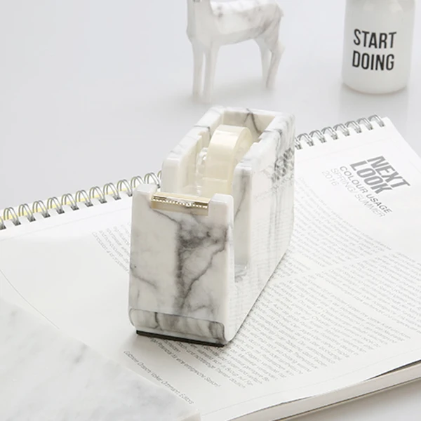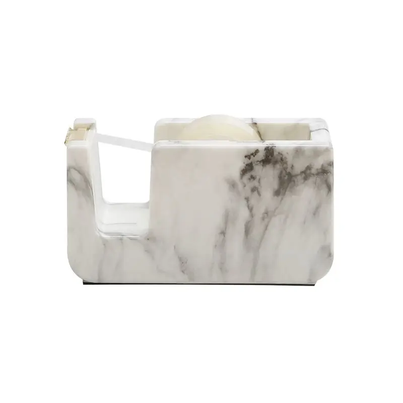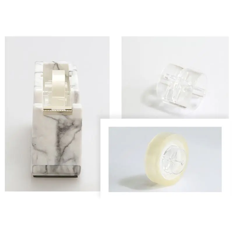 Роскошный белый мраморный аденсивный диспенсер ленты с золотыми пилочными лезвиями, прозрачная лента ролик и Противоскользящий коврик нижний дизайн;