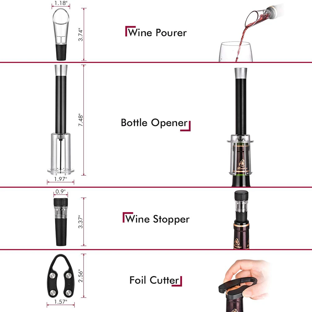 Изготовлен из высококачественного АБС/алюминиевого материала, тефлоновая игла, поверхность штопора, обработанная пищевой и стойкостью к коррозии. Пищевой силикон для вина