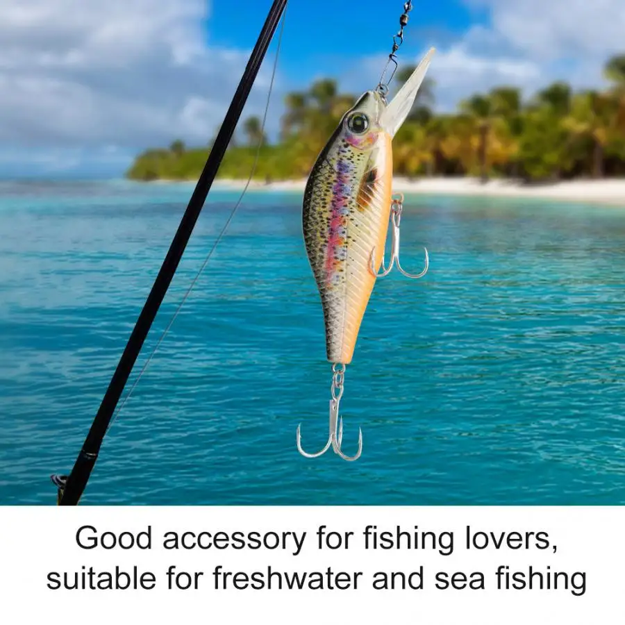 Изготовлен из высококачественного АБС, антикоррозионного, прочного и прочного, стойкого к укусам рыбы и небьющегося. Бионический дизайн с реалистичной росписью, хорошо подходит для заманивания рыбы. Крючок острый и колючий, совместим со многими способами рыбалки, подходит для многих рыб. Он может перемещаться в воде, как настоящая рыба, легко притягивает внимание рыбы. Хороший аксессуар для любителей рыбной ловли, подходит для пресной воды и морской рыбалки.