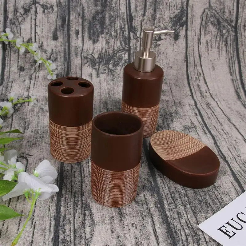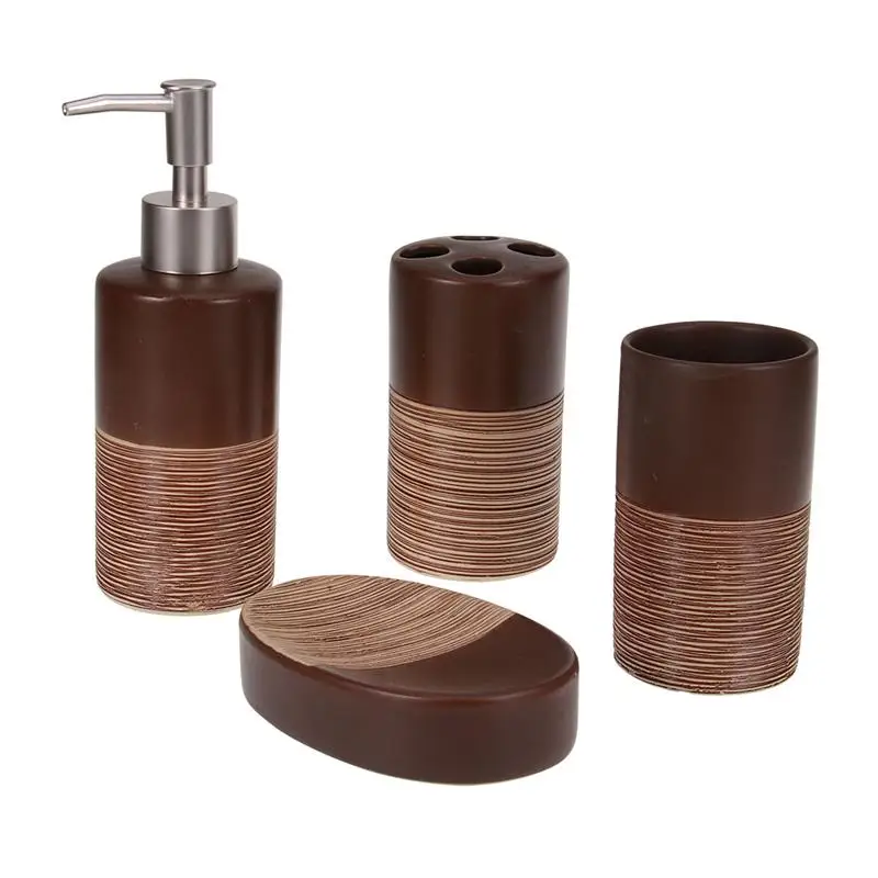 Вы ищете подходящие аксессуары для ванной? Этот набор из 4 керамических костюмов для ванной комнаты, включая бутылочку для лосьона, держатель для зубной щетки, чашку, мыльницу. Полностью оборудован для купания. Эти аксессуары для ванной комнаты украсят ванную комнату, давая вам различный опыт душа и освещая вашу ванную комнату.