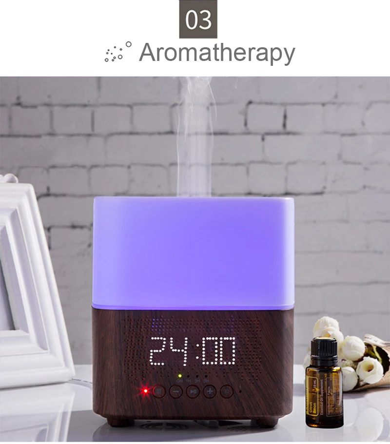 -Ароматический диффузор с Bluetooth динамиком и дисплеем часов: 6-в-1 устройство для ароматерапии, Рабочий Стол Bluetooth/время диффузор для эфирных масел, сочетает в себе, ароматерапия, туманный распылитель, диффузор, музыкальный проигрыватель, отображение времени, светодиодный ночник, будильник и изысканное украшение в одном удобном устройстве, использует Bluetooth доступ для воспроизведения вашего личного списка любимой музыки, легко настроить.