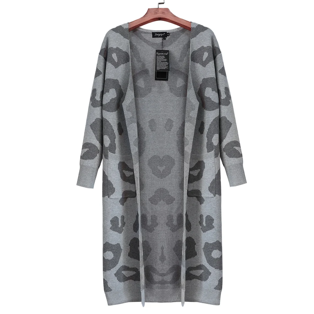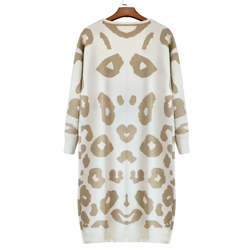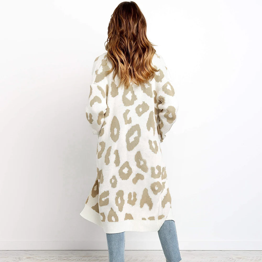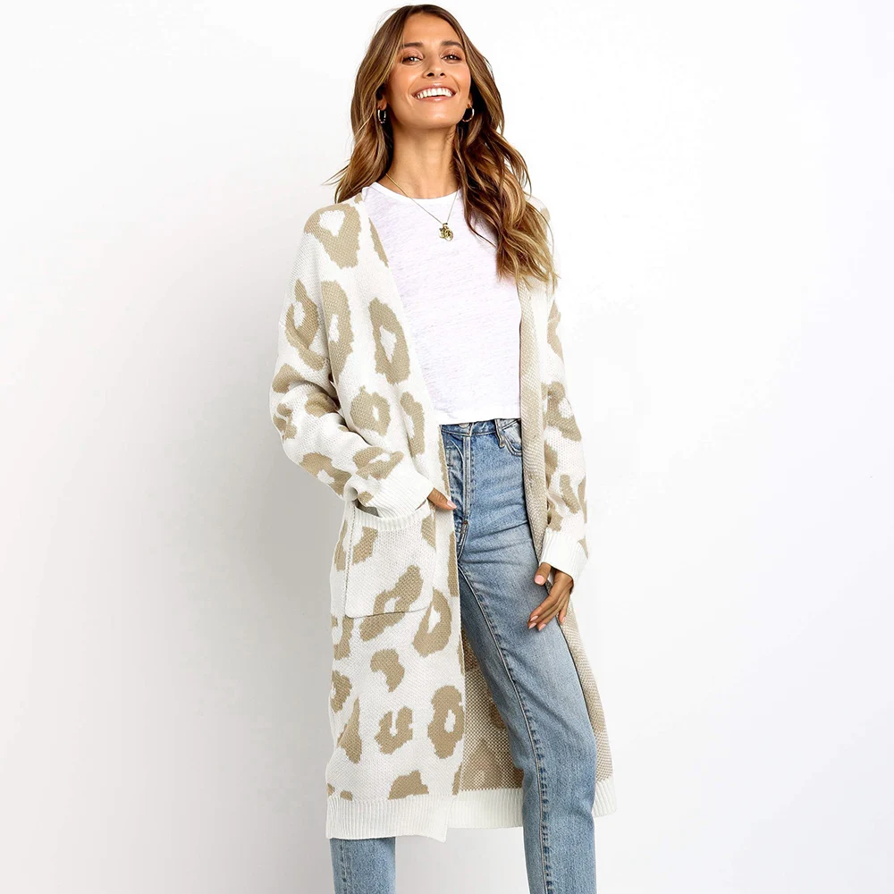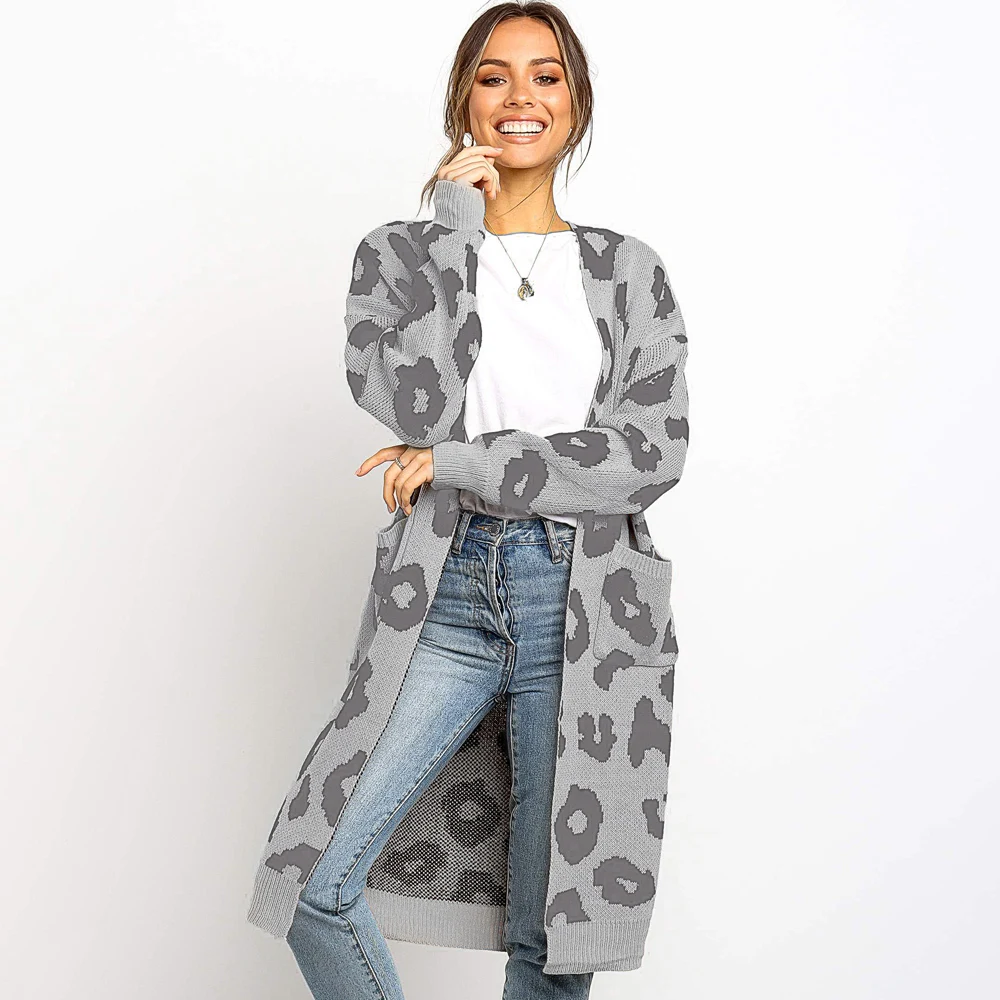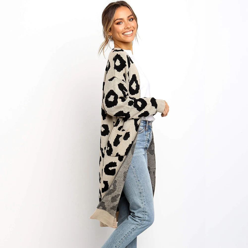 2. Стиль: леопардовый принт, длинный вязаный кардиган, Повседневный, элегантный, свободный, с длинными рукавами.