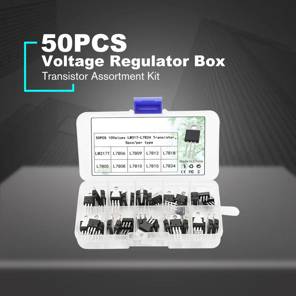 50 шт. Напряжение регулятор коробка транзисторный набор 10 стоимость LM317T L7805 L7806 L7808 L7809 L7810 L7812 L7815 L7818 L7824