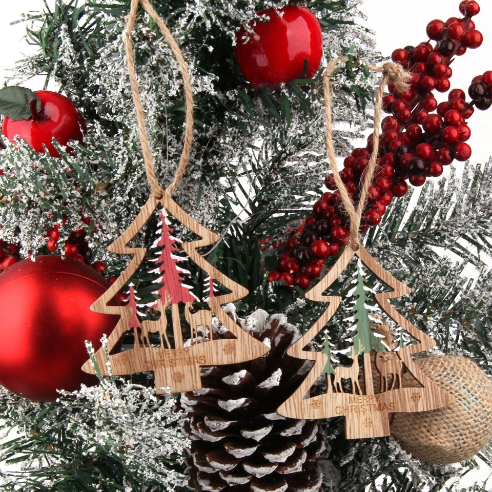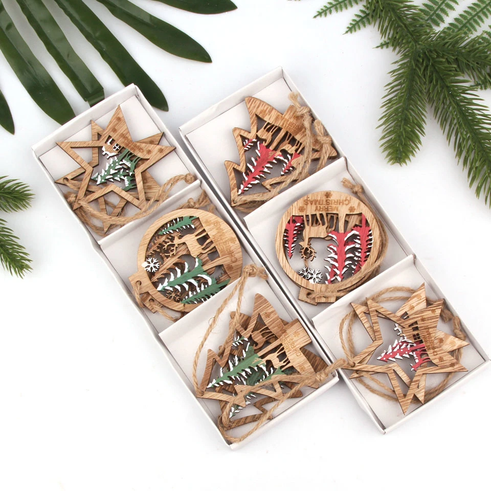 6 шт./партия, винтажная Рождественская звезда/дерево/шар, деревянные подвески, украшения из дерева, украшения для рождественской елки