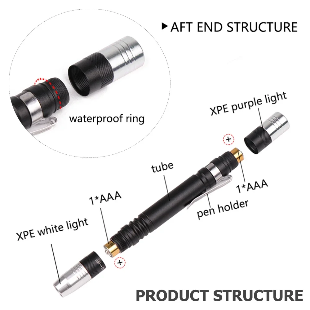 Черный светильник с УФ-вспышкой идеально подходит для обнаружения сухих пятен для собак и грызунов и неблагоприятных пятен, которые не видны невооруженным глазом. Легко определить скорпионов, аутентифицировать валюту, водительские права, официальные удостоверения личности, паспорта.