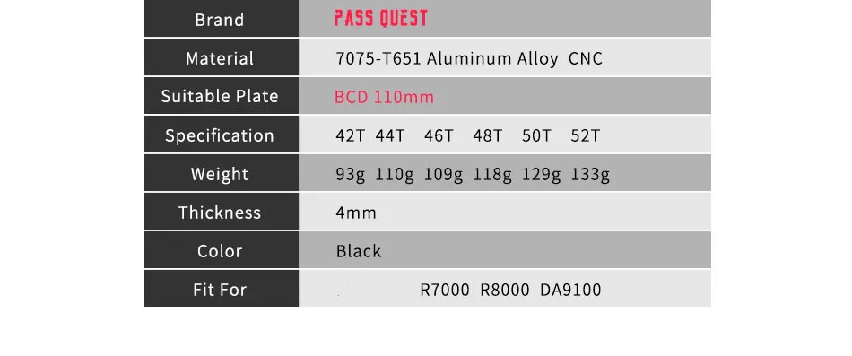 Pass Quest R110/4BCD 110BCD Овальный дорожный велосипед 40 T-52 T узкая широкая цепь из колец цепь передняя Звездочка велосипеда передняя Звездочка для R7000 R8000 DA9100