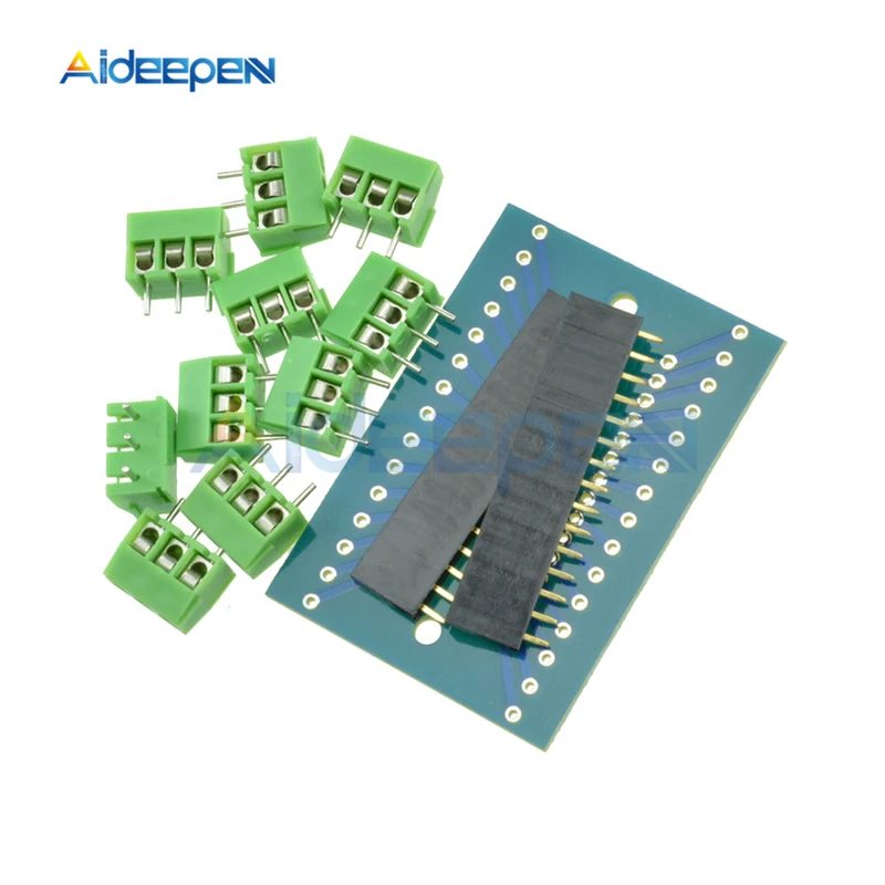 Особенности: 100% новый бренд и высокого качества Новая плата расширения, клеммный адаптер, DIY наборы для arduino NANO IO щит V1.0 Расширительный Щит IO для arduino Nano специально разработан для облегчения соединения между расширительным экраном для arduino Nano и многих других устройств. В целом, для нано-контроллера arduino он расширяется, чтобы соединять эти устройства простым и безотказным образом. Технические характеристики: Размер печатной платы: 5,5*3,8 см Цвет печатной платы: как показано на рисунке Посылка включает в себя: 1 * Расширительная плата, клеммный адаптер, DIY комплекты для arduino NANO IO Shield V1.0