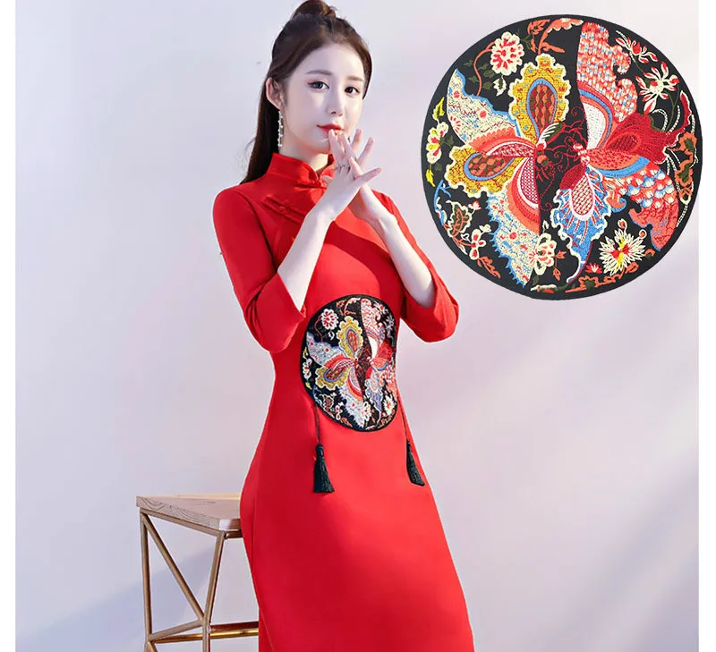 Креативные Круглые Декоративные наклейки для одежды с вышивкой бабочки в китайском стиле