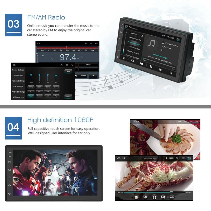 FM/AM радио: онлайн-музыка вы можете передавать музыку на автомобильный стерео по FM, чтобы наслаждаться оригинальным стереозвуком автомобиля