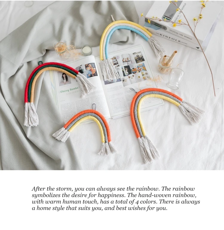 После шторма вы всегда можете увидеть радугу. Радуга символизирует желание счастья. Ручная Радуга с теплым человеческим прикосновением имеет в общей сложности 4 вида цветов. Всегда есть домашний стиль, который подходит вам, и наилучшие пожелания для вас.