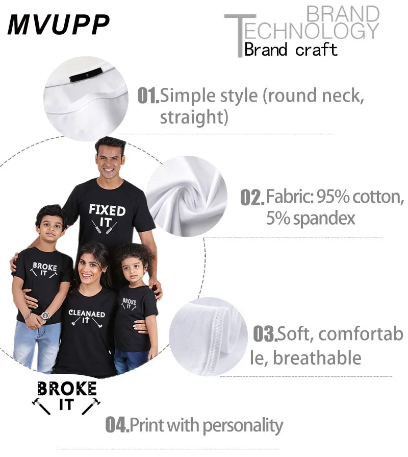 Примечание: одежда для папы, мамы и детей отличается ценами. Одна цена за одну футболку Наименование товара: Семейные футболки Вес: около 0,18 кг/шт. Ткань: 95% хлопок 5% спандекс Упаковка: 1 шт упаковано в 1 мешок Бренд: MVUPP Цвет: белый, серый, черный, красный Отца Размеры: M-L-XL-XXL-XXXL Мать Размеры: S-M-L-XL-XXL Дети Размер: 12M (80)-24M (90)-3T (100)-4T (110)-5 T/6 T (120) -7 T/8 T (130)-9 T/10 T (140)