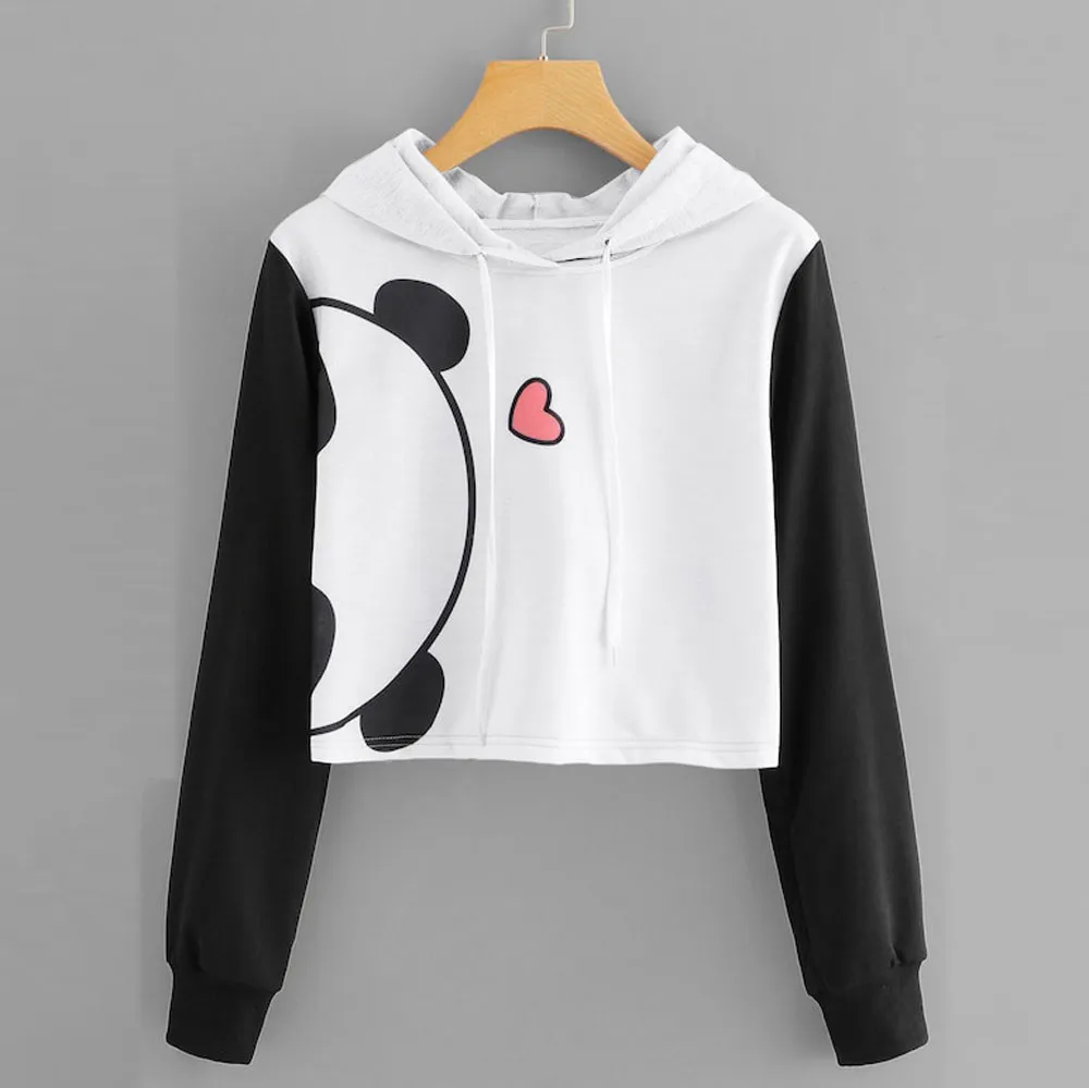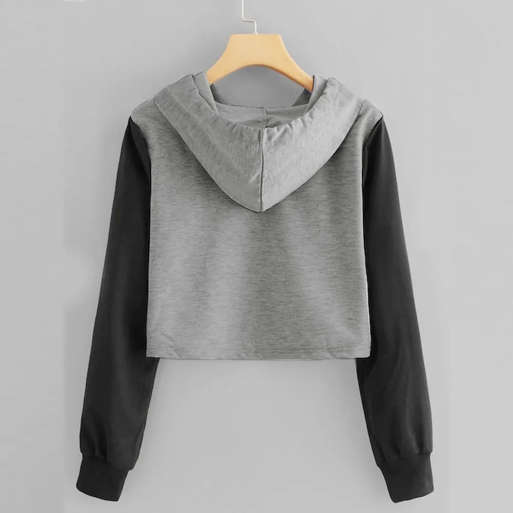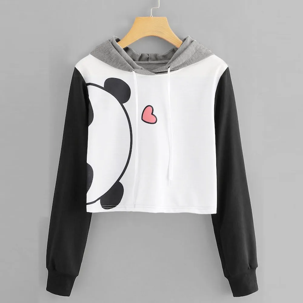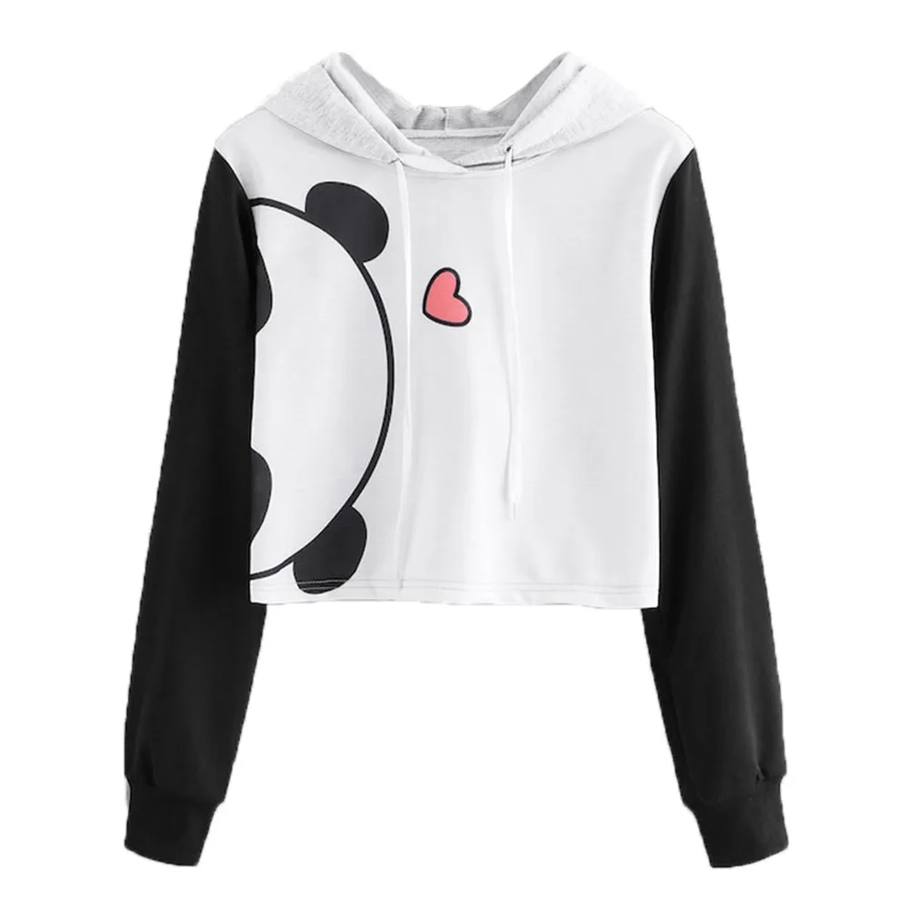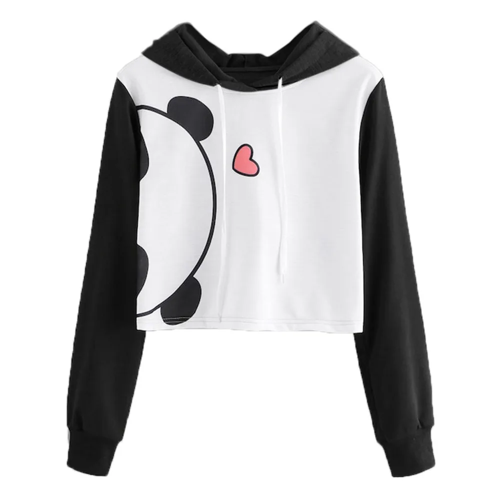 Для женщин и девочек с животным принтом, с длинным рукавом, с капюшоном, укороченная блузка, пуловер, толстовка, топы