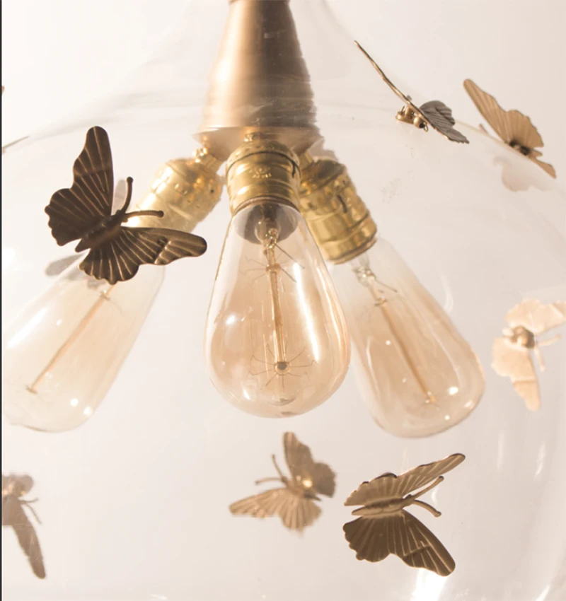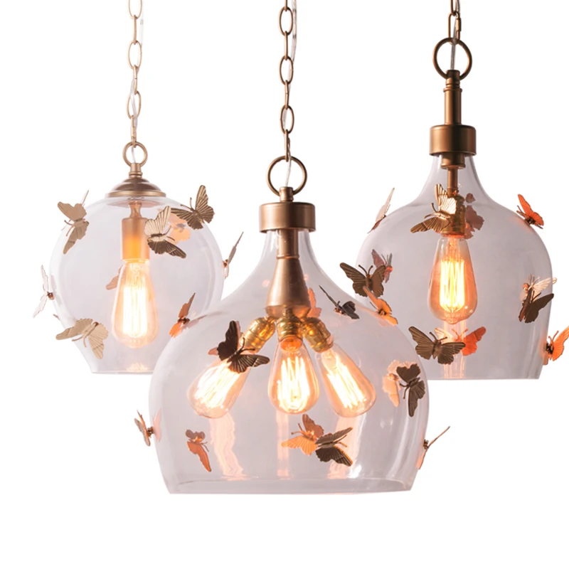 Маленькая бабочка стеклянный подвесной светильник золотой потолочный светильник для ночное белье, детская одежда для девочек комнаты и кухни, столовой чехлы для спальни прихожей подвесной светильник