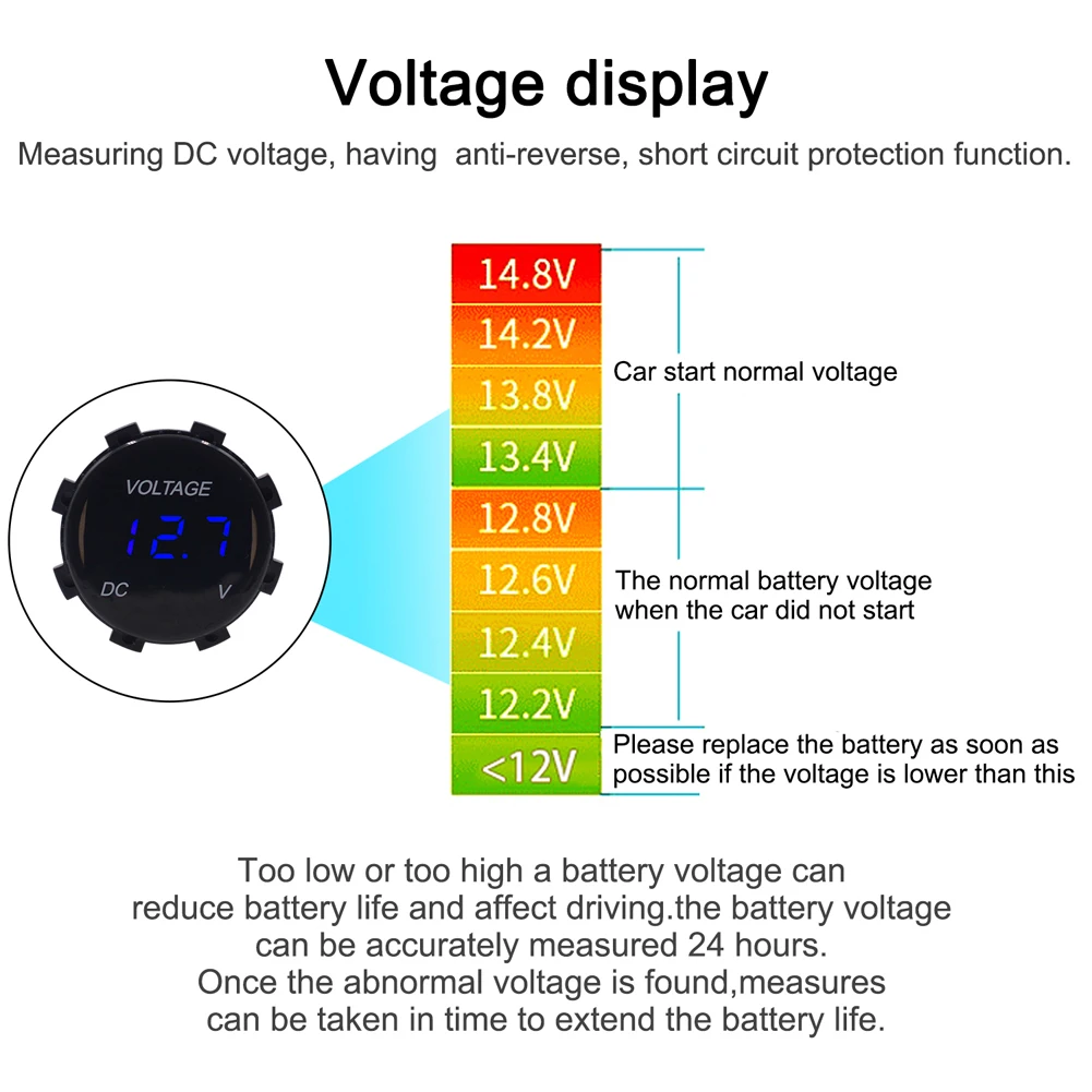 Конструкция имеет небольшие размеры, восхитительный товар, просты в установке, и Величина напряжения автомобиля и АКБ для мотоциклов, может быть измерены Соединительный шнур питания.