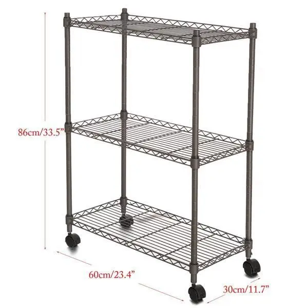 3-х уровневый Бытовая полка органайзер книжная полка настольная Корзина держатель стеллажи передвижная тележка с колесами для монтажа в стойку аксессуары для гостиной 100% Фирменная новинка. Бренд: Homdox Материал: пластик, железо 3 цвета: серебристый, серый, черный Размер: L60 x W30 x H86cm/23,4x11,7x33,5 дюймов (прибл.) Диаметр трубы: 2 см/0,78 дюйма Диаметр колеса: 4 см/1,56 дюйма Количество ярусов: 3 Отделка: процесс нанесения порошкового покрытия Максимальная нагрузка на полку: 110 фунтов/50 кг 4 колеса легко подвижный Держите свои вещи в строгом и аккуратном положении на руке Максимальная грузоподъемность до 330lbs, 110lbs на полку Выравнивающие ножки, регулируемые для хранения различных размеров аксессуаров 3-х уровневый предлагает достаточно места для хранения ваших товары для дома. Превратите ваш гараж, офис, кухню и ресторан в организованное и аккуратное место. Легко собрать, никаких инструментов не нужно. Посылка Содержание: 1x3-ярусная полка Примечание: Из-за разницы между различными мониторами изображение может не отражать фактический цвет изделия. Гарантируем, что стиль товара, представленного на изображениях, соответствует реальному стилю, но характеристики отдельных видов продукции отличаются от тех, что у данной модели. Спасибо!