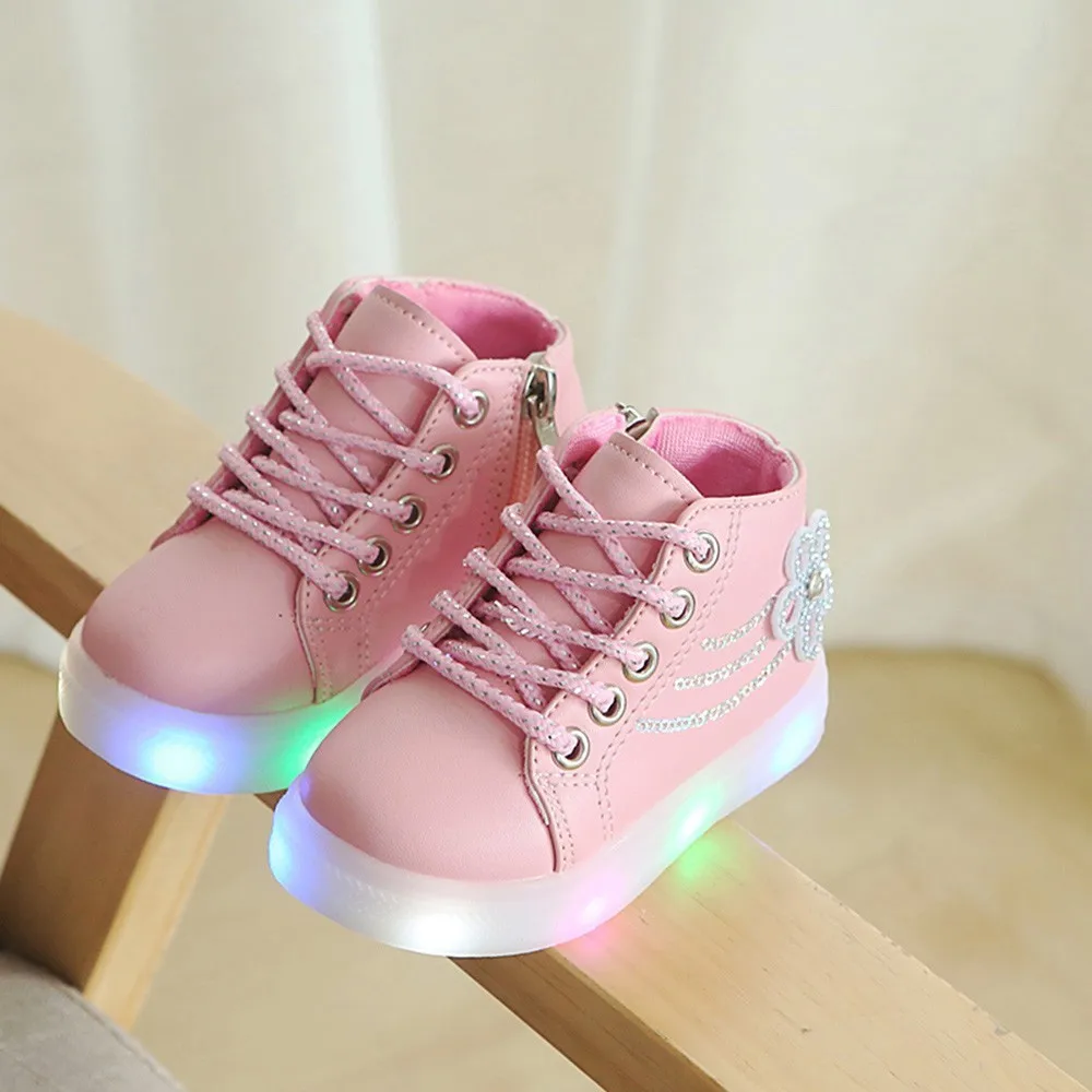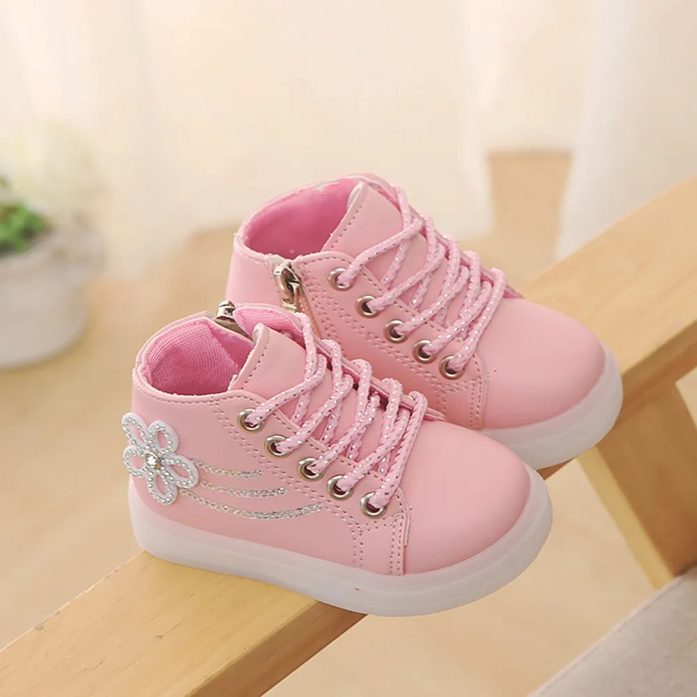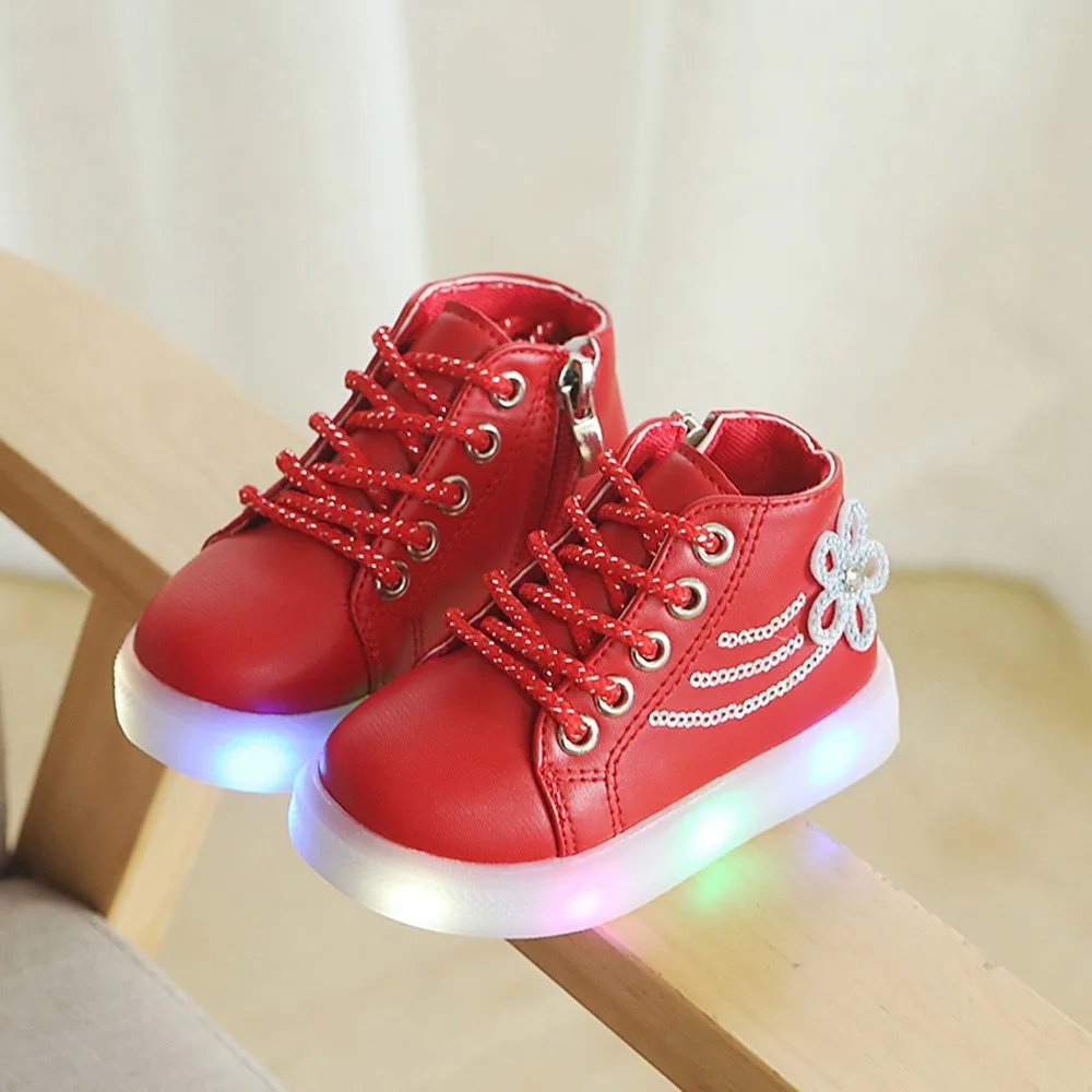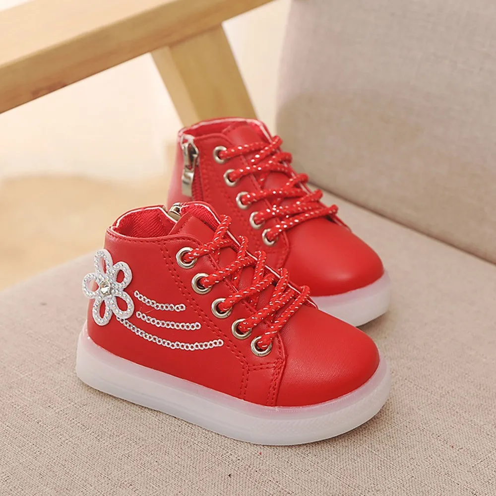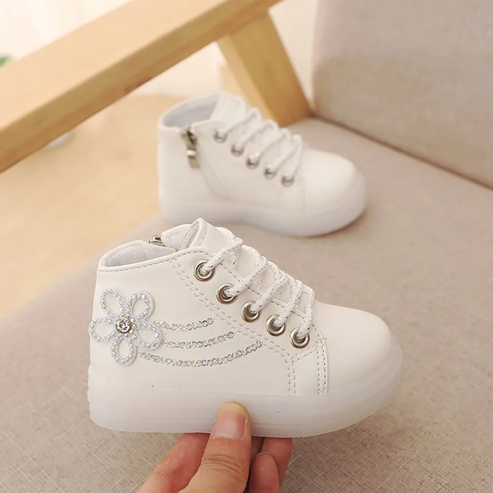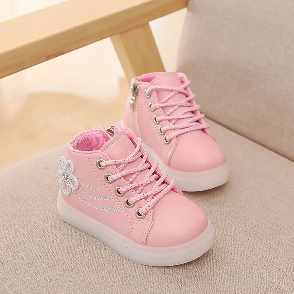 Детская обувь для маленьких девочек с цветами и кристаллами; Светодиодный светильник; Светящиеся спортивные ботинки для бега
