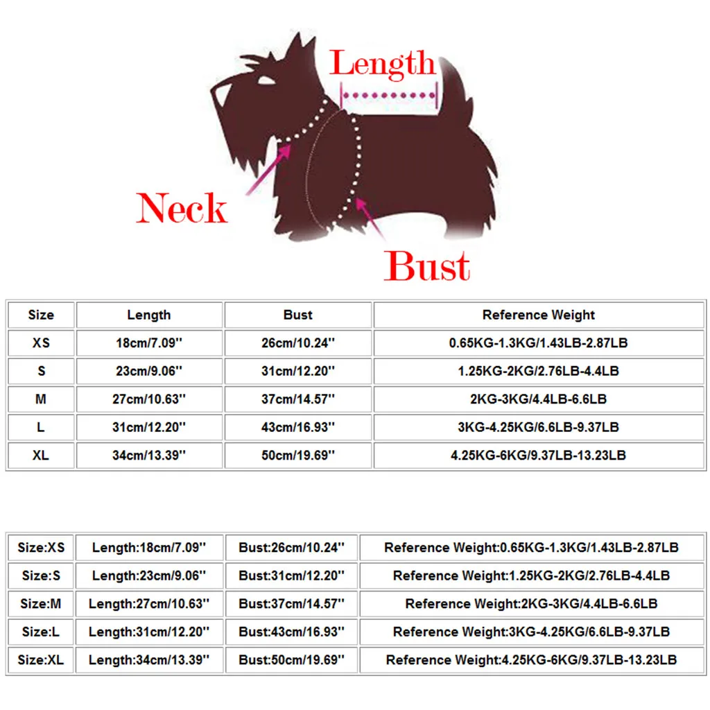 Если размеры вашей собаки падают между двумя размерами, выберите самый большой размер.