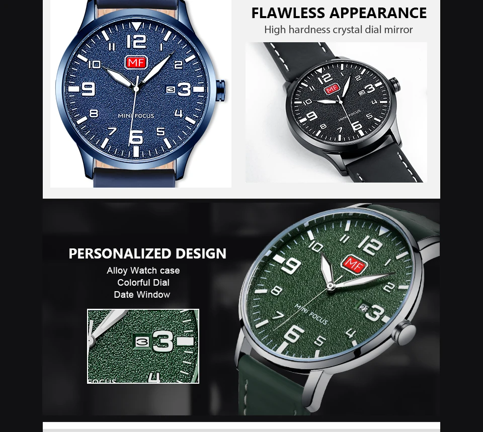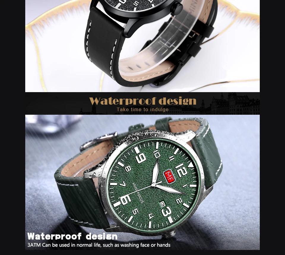 Мини фокус люксовый бренд Мужские наручные часы мужские водонепроницаемые кожаный ремешок модные часы