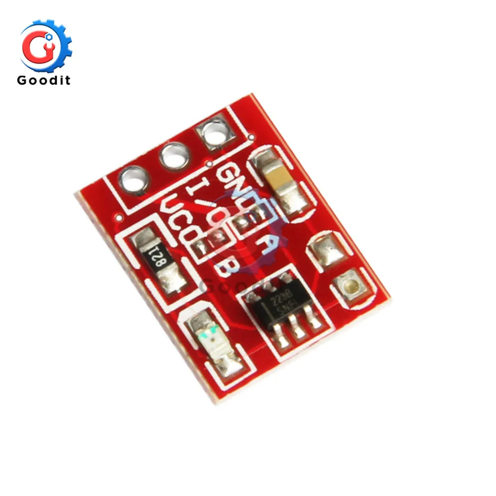 Описание: 1. Размер: 15*11 мм 2. Мощность: 2,5-5,5 V Режим настройки триггера: (1- > Короткий; 0- > без короткого) AB = 00: Нет-замок высокого уровня TTL; AB = 01: самозамок высокого уровня TTL; AB = 10: низкий уровень TTL без блокировки; AB = 11: самозамок с низким уровнем TTL; Посылка включает в себя: 5 шт. * TTP223 Модуль Сенсорного ключа сенсорная кнопка емкостные переключатели самоблокирующиеся/без блокировки Jog 2,5-5,5 В