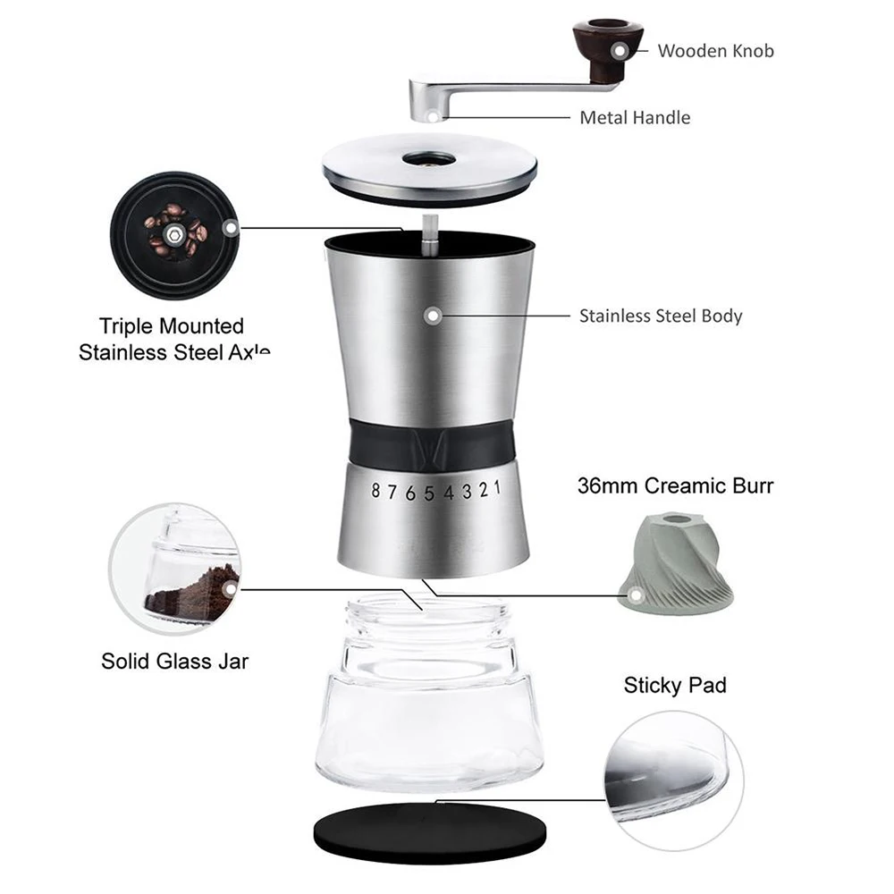 Высококачественная коническая керамическая кофемолка из нержавеющей стали, ручная кофемолка