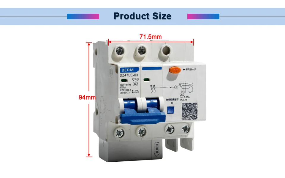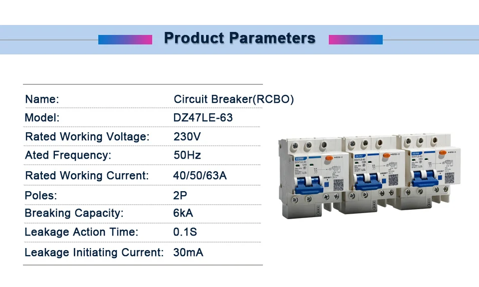 DZ47LE-63 2 P защита от утечки защитный автомат-выключатель с остаточным током автоматический выключатель защита от перегрузки по току RCBO Название продукта: автоматический выключатель (RCBO) Модель: DZ47LE-63 Номинальное рабочее напряжение 230 В Номинальный рабочий ток: 40/50/63A Полюсов: Американская классификация проводов 2р Отключающая способность: 6kA Время работы утечки: 0,1 S Ток запуска утечки: 30 мА Упаковка: 1 шт. автоматический выключатель