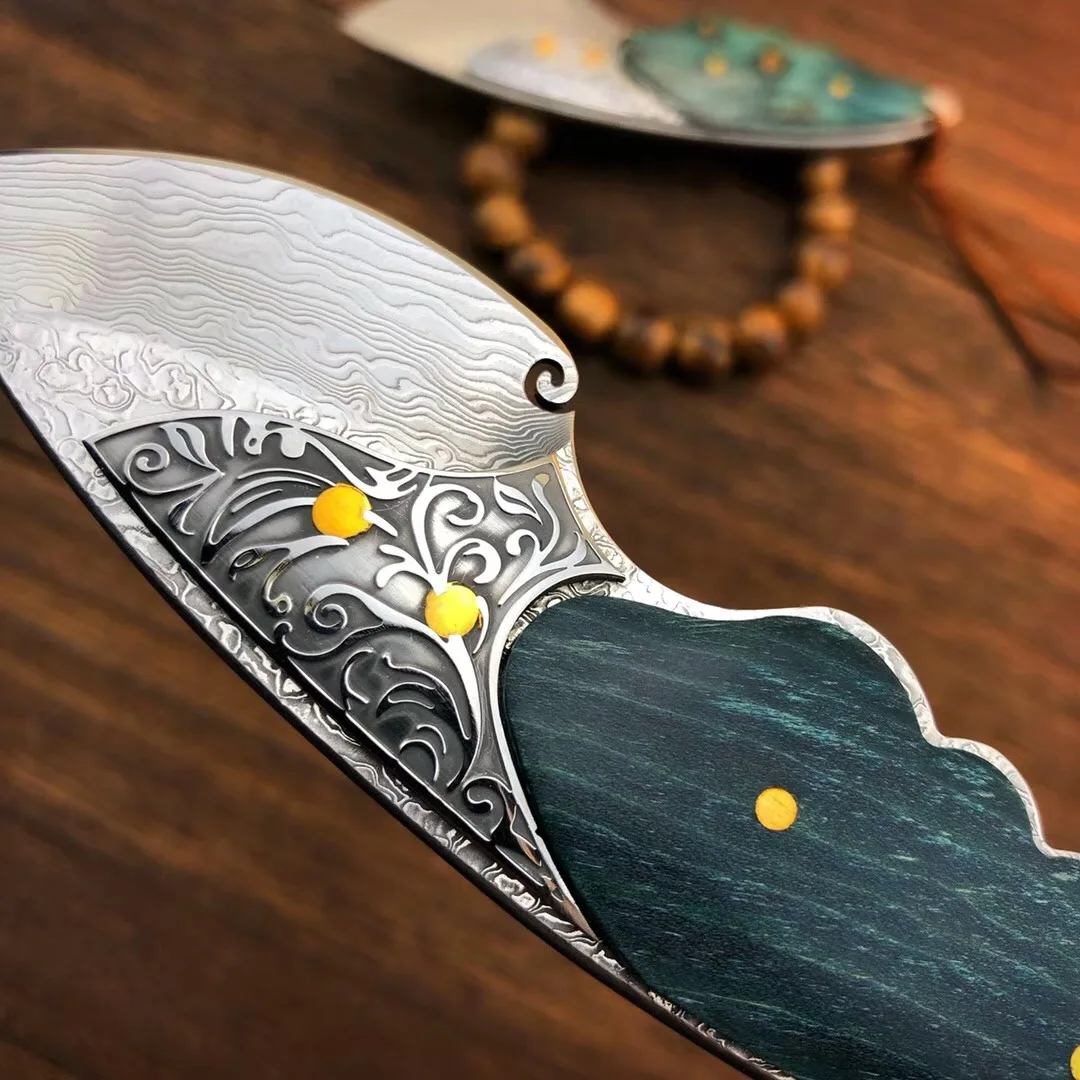 Оригинальный дизайн Дамаск 60HRC Лезвие сталь смолы ручка Флиппер Складной нож Открытый Кемпинг Охота Карманный фрукты ножи