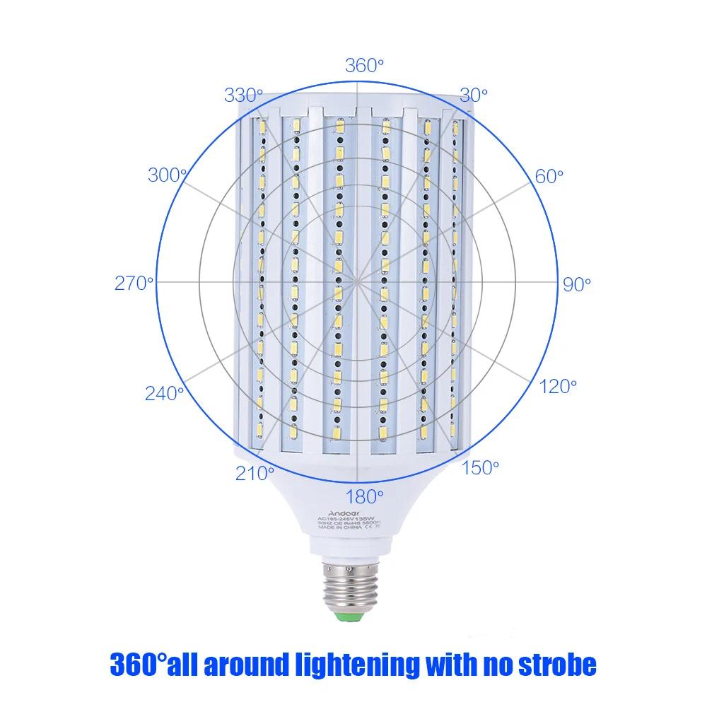 Эта лампа 135W 5500K отличается высокой яркостью и отличной цветопередачей, 360 ° вокруг освещения и без стробоскопа, идеально подходит для фотосъемки в фотостудии. Чрезвычайно низкое энергопотребление является экономичным выбором для вас.