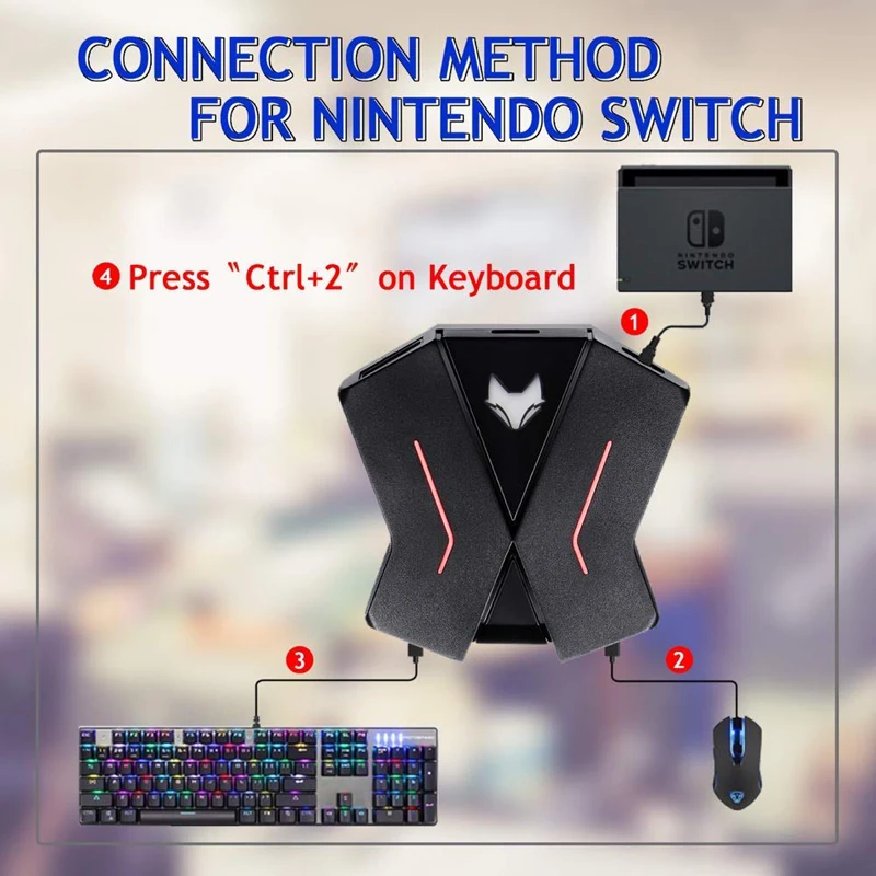 -Позволяет проигрывателям наслаждаться играми на Nintendo Switch, Xbox One, PS4 и PS3, проводная клавиатура и проводные мыши вместо игровых контроллеров. Идеально подходит для таких игр, как FPS, TPS, RPG, RTS и т. Д.