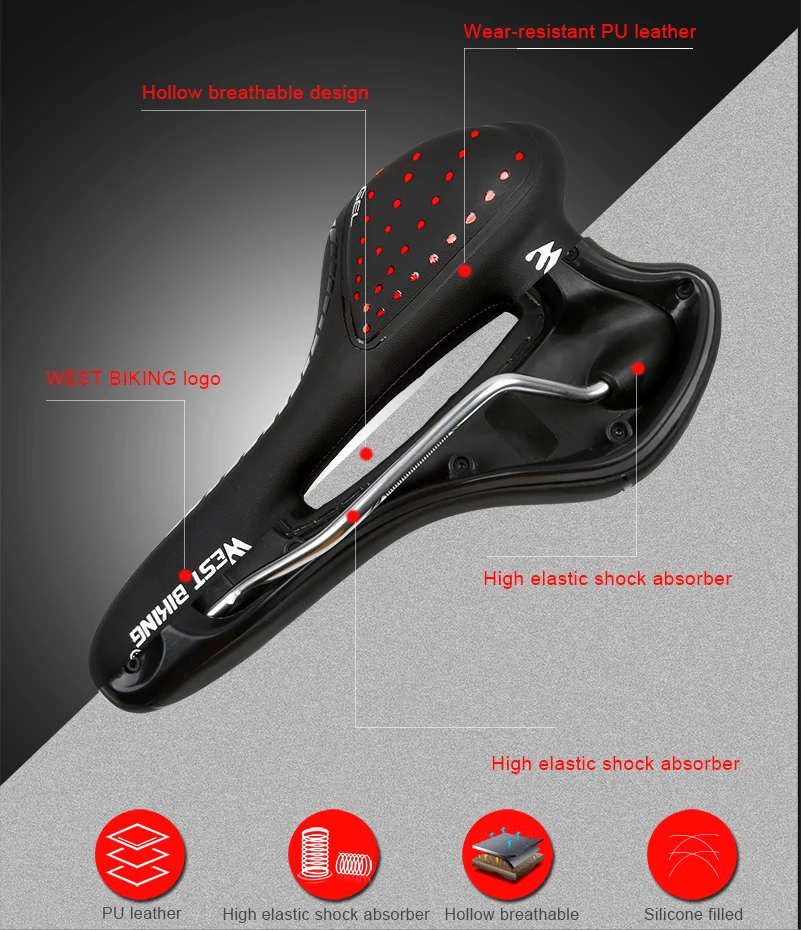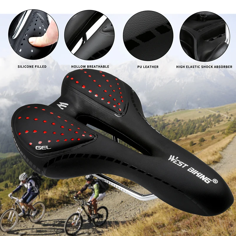 WEST BIKIMG утолщенное велосипедное седло красный желтый светоотражающий Предупреждение мягкое амортизирующее Велосипедное Сиденье MTB седло горного велосипеда