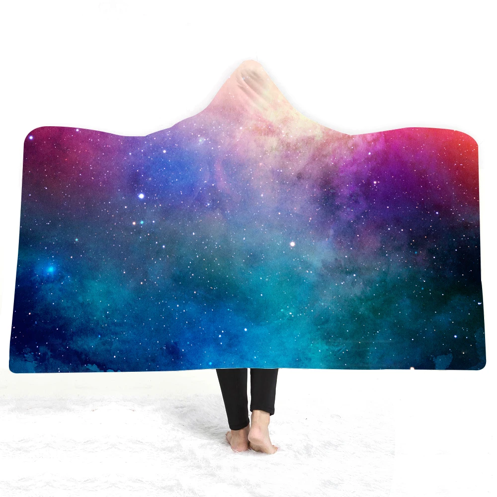 3D Вселенная печать богемное одеяло с капюшоном для взрослых звездное небо Вселенная шерпа флисовое женское одеяло микрофибра 1,5*2 м/1,5*1,3 м