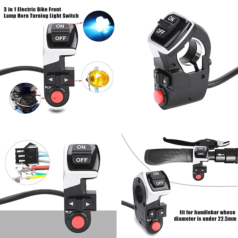 3 в 1 Электрический велосипедный светильник с роговым переключателем и кнопкой для скутера, передняя лампа для электровелосипеда, сигнальный звонок, переключатель для горного велосипеда, аксессуары, кнопка