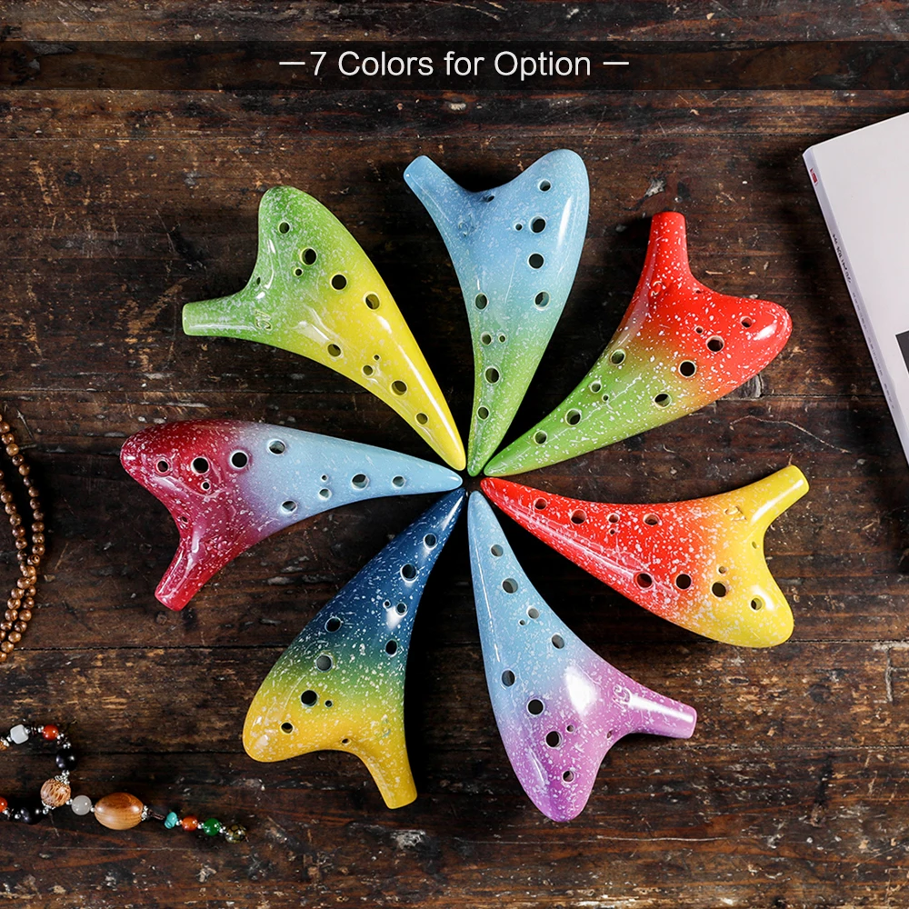 Эти 12 отверстий окарина сделаны из натурального доломита с застекленной поверхностью. Со звездным стилем, он выглядит красиво и уникально. Звук тангажа очень хороший. Это прекрасный подарок для любителей музыки и учеников. Окарина с 12 отверстиями поставляется с шнурком, так что вы можете носить его на шее, куда бы вы ни отправились.