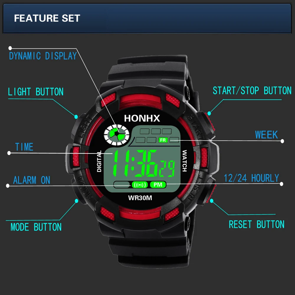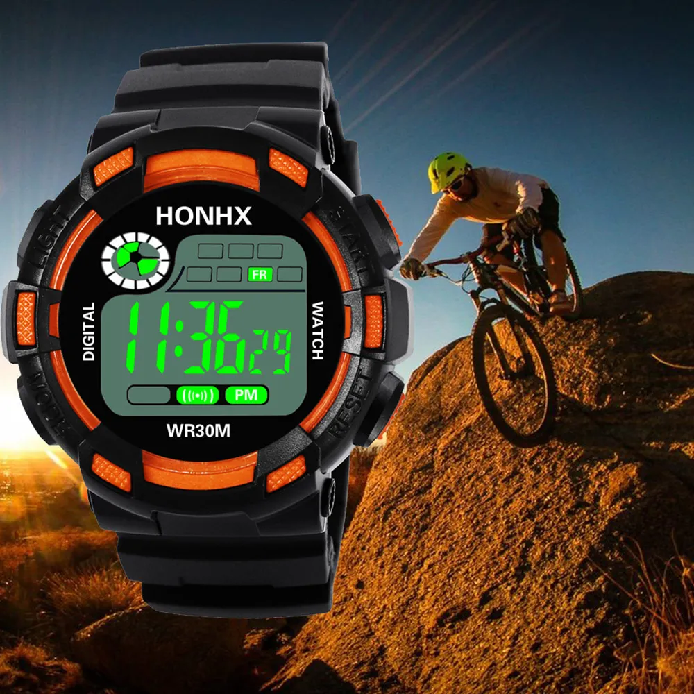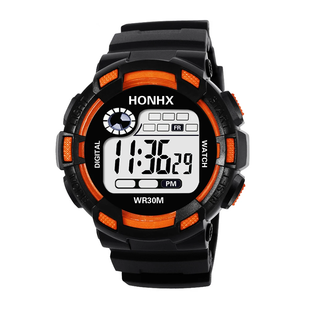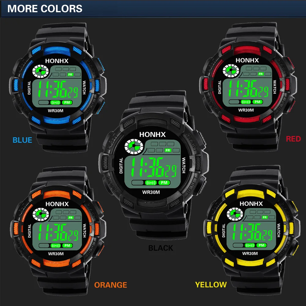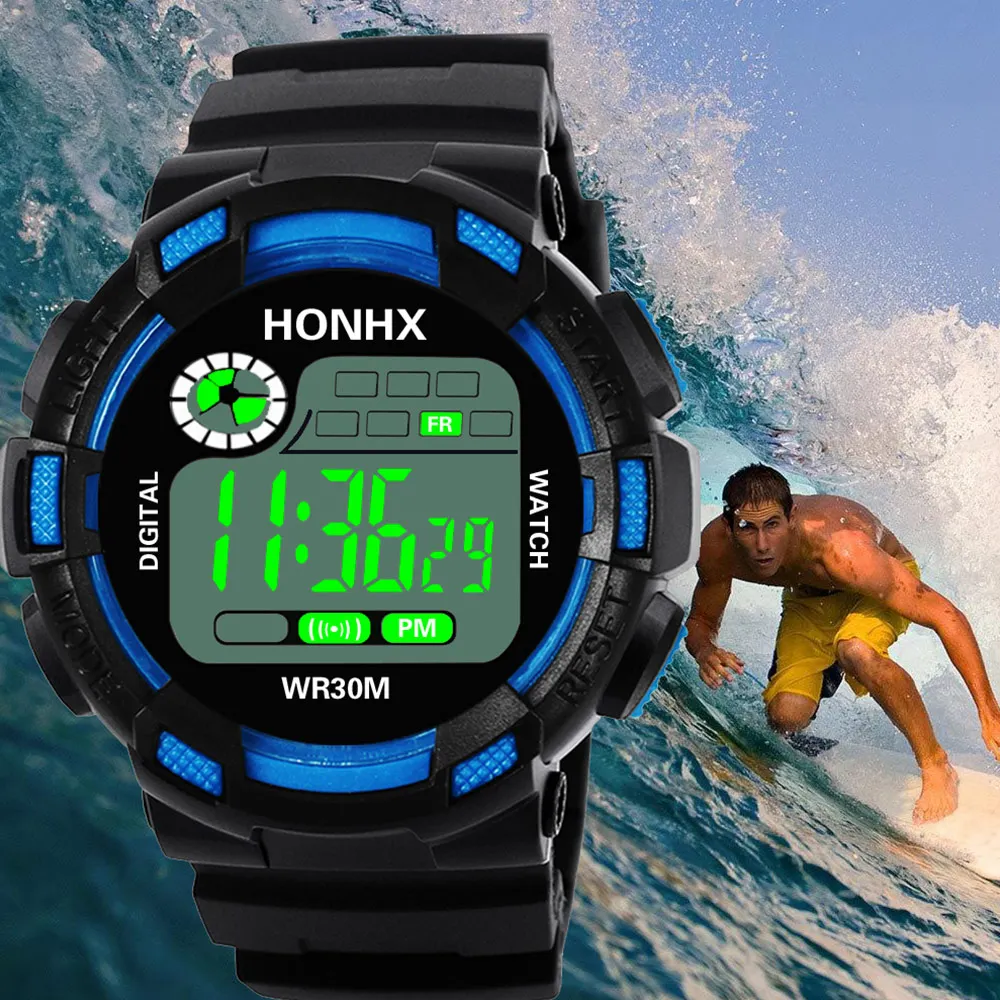 Новый светодиодный цифровые часы водонепроницаемые спортивные наручные шагомер для мальчиков мужская повседневная жизнь 50 м Дайвинг электронные фосфоресцирующие спортивные часы