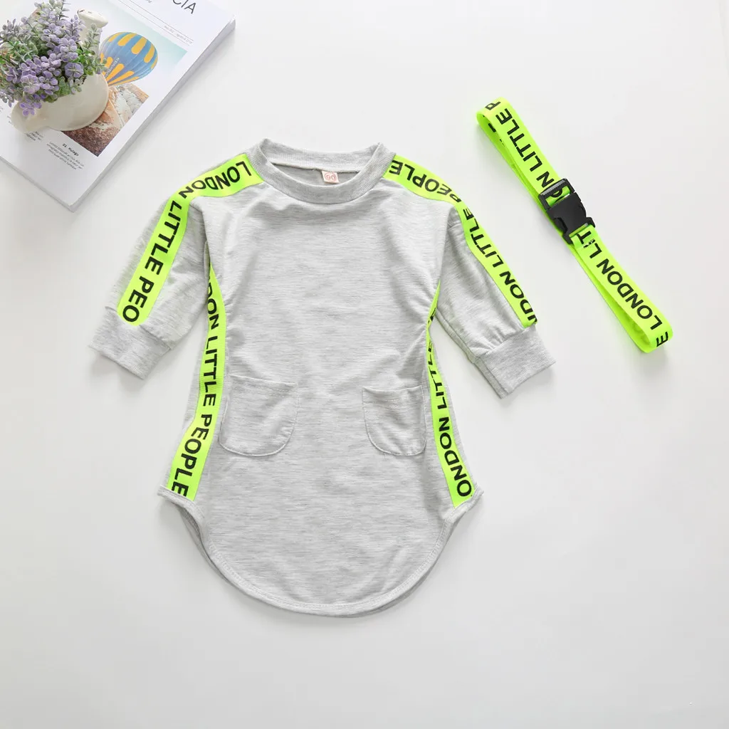 Платье принцессы с длинными рукавами и буквенным принтом, карманами и поясом для маленьких девочек Описание продукта: Модный дизайн, 100% новый бренд, высокое качество! Материал: Смешанный хлопок Тип узора: с буквенным принтом Воротник: круглый вырез Длина рукава: длинный рукав Основной цвет: как показано на картинке Стиль: Модный Стильный и модный дизайн сделает вашего ребенка более привлекательным Прекрасно подходит для повседневной носки, на каждый день, вечерние или фотосессии, также у нас есть отличная идея для детского праздника подарки Он изготовлен из высококачественных материалов,Ощущение мягкости рук, никакого вреда для кожи вашего ребенка Возможны незначительные отклонения в 1-3 см из-за ручного измерения и небольшой разницы в цвете для различных настроек дисплея, Спасибо за понимание! 1 дюйм = 2,54 см Пожалуйста, обратите внимание: если ваш ребенок пухленький, мы рекомендуем выбрать больший размер, спасибо. Спасибо и хорошего дня! Посылка включает в себя:1 платье + 1 ремень Размеры таблицей: