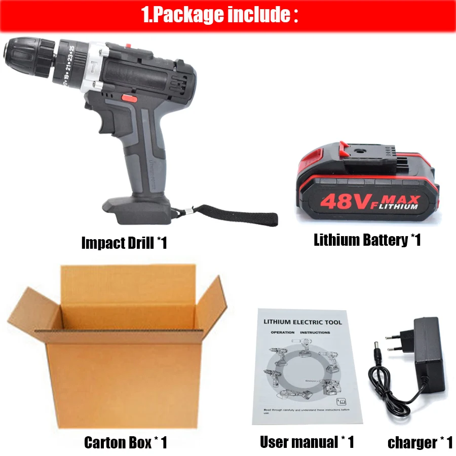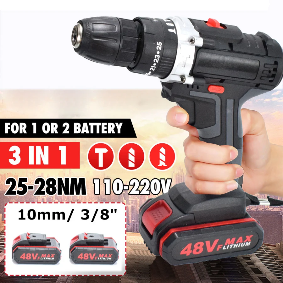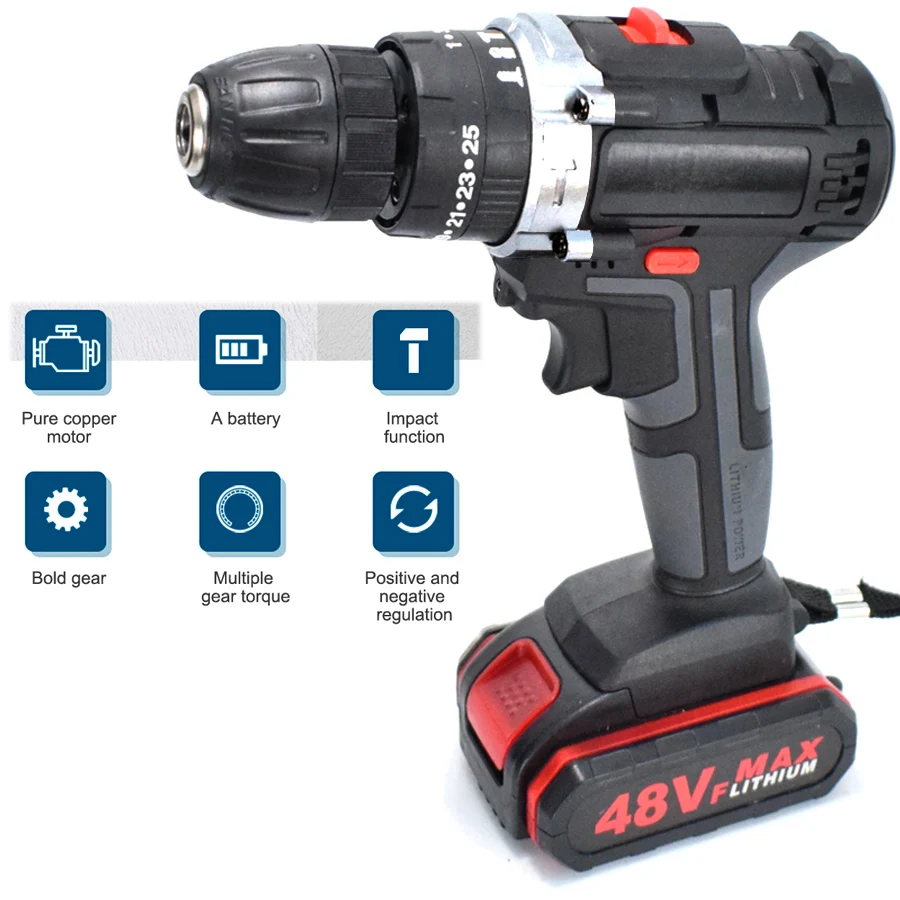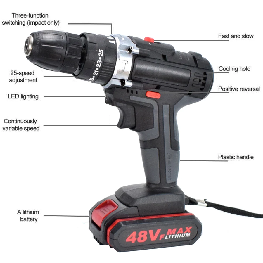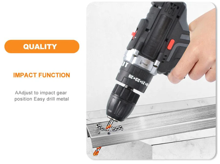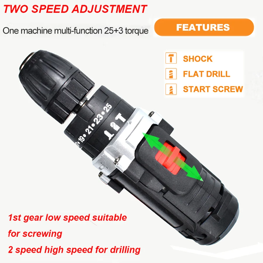 Электрический ударный Аккумуляторный шуруповерт, комплект ручных инструментов для аккумуляторной батареи, 3/8 дюйма, 21 в, перезаряжаемый, 2 скорости, литий-ионный