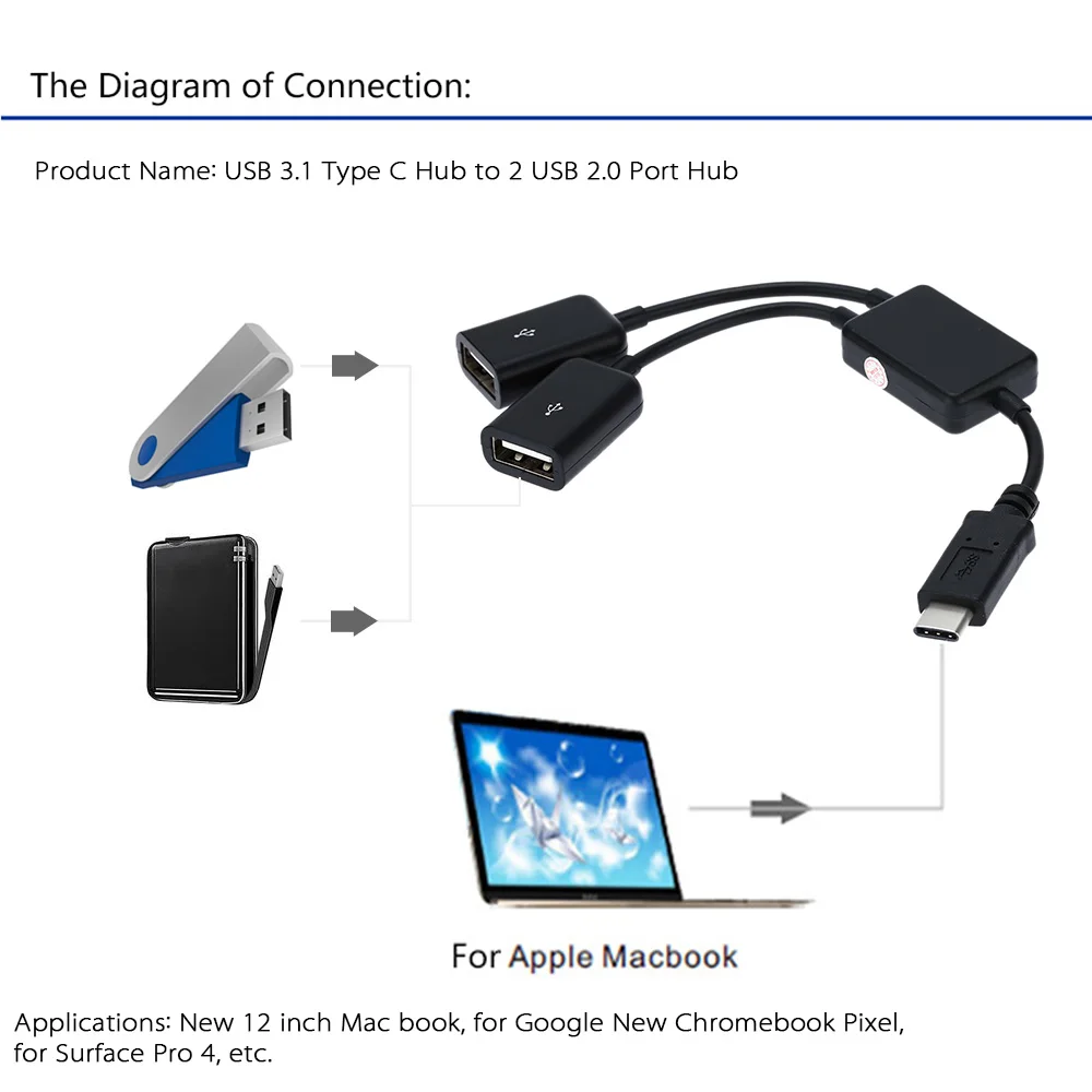 1 * USB 3,1 Type C концентратор к 2 USB 2,0 портовый концентратор