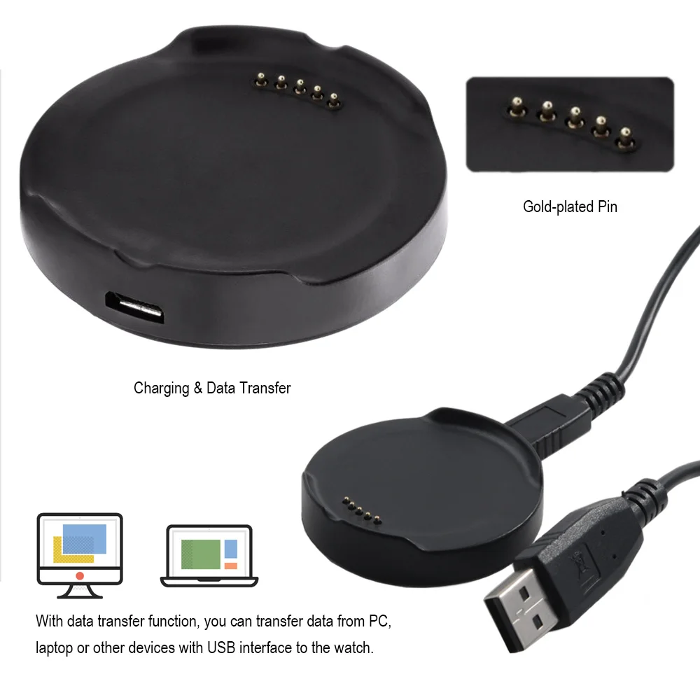 * С интерфейсом USB, простой в использовании ноутбук, ПК или большинство адаптеров для зарядки ваших часов. Функция передачи данных облегчает передачу данных с ПК, ноутбука, планшета или других устройств с интерфейсом USB на часы.
