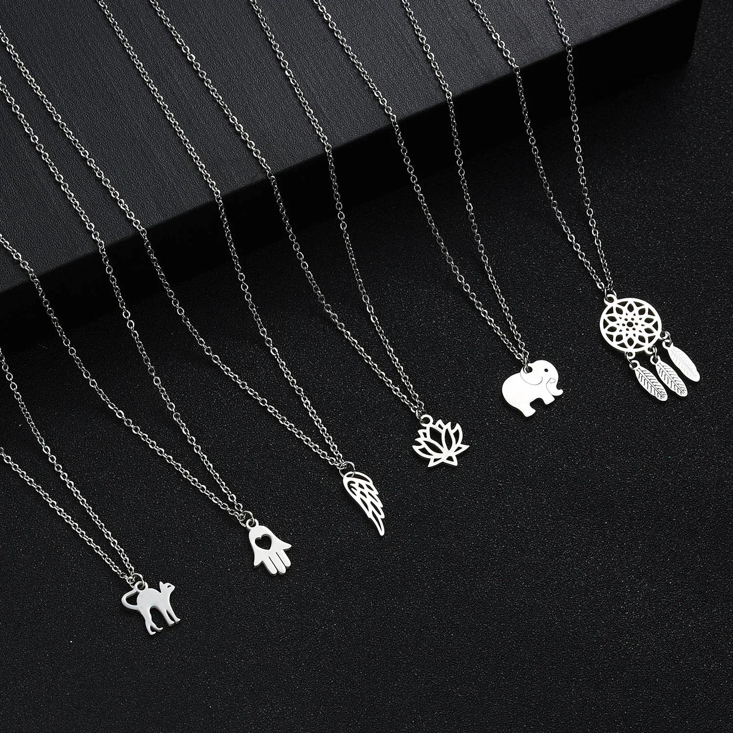 Серебряное ожерелье из нержавеющей стали, кактус, Крыло ангела, лотос, лотос, Ловец снов, ожерелье, новый дизайн, ювелирное изделие для женщин, подарок для мамы