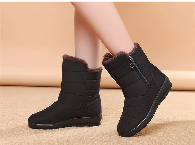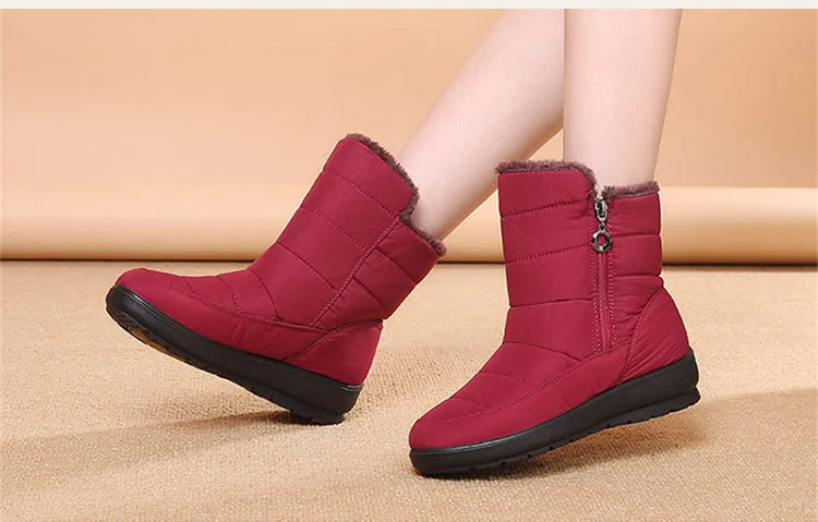 Женские ботинки; теплые женские зимние ботинки на низком каблуке; Botas Mujer; большие размеры; Зимние ботильоны; Женская водонепроницаемая зимняя обувь
