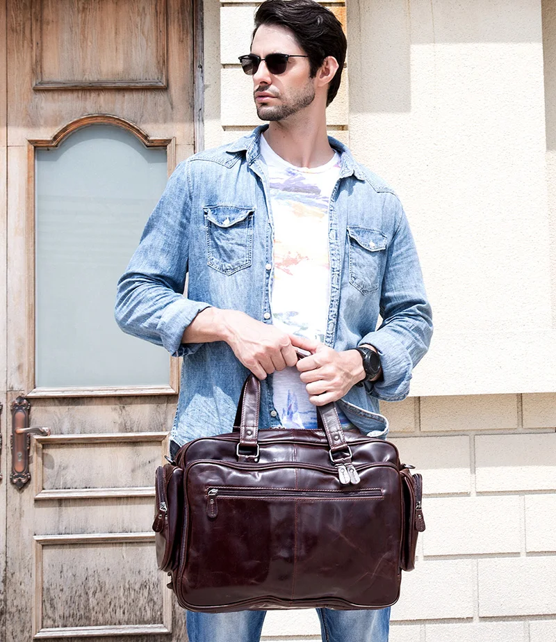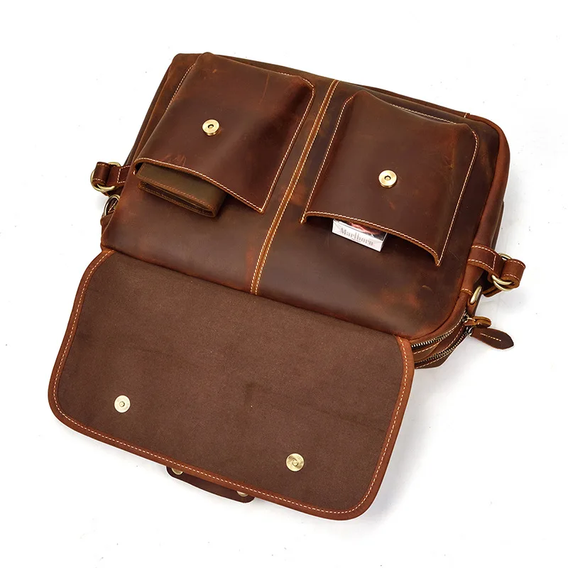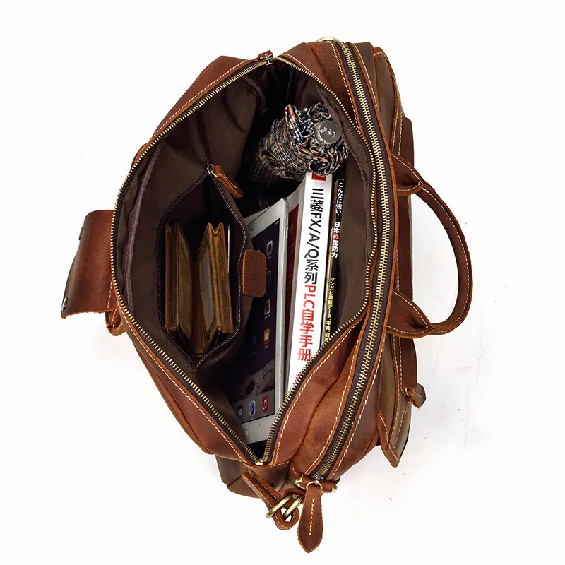 Используется для Brifcase, сумки, Кроссбоди Мешок [Материал]: 100% Натуральная Воловья кожа [Цвет]: коричневый/черный [Стиль]: сумка, сумка на одно плечо [Размер]: 39 см (длина) x 15 см (ширина) x 28 см (высота) Ёмкость: подходит для 15 дюймового ноутбука