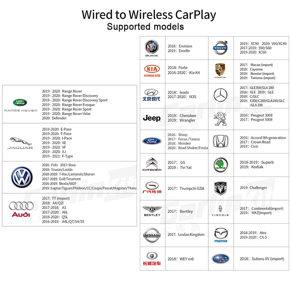 Тип B: подходит только для оригинального автомобиля с проводом carpaly