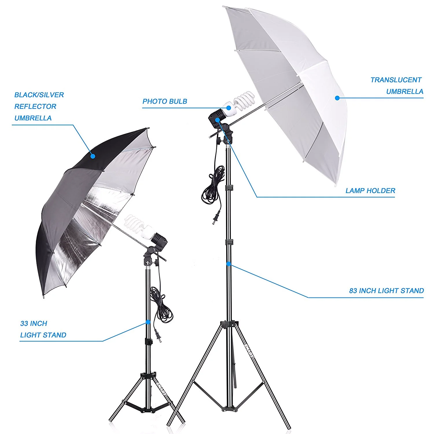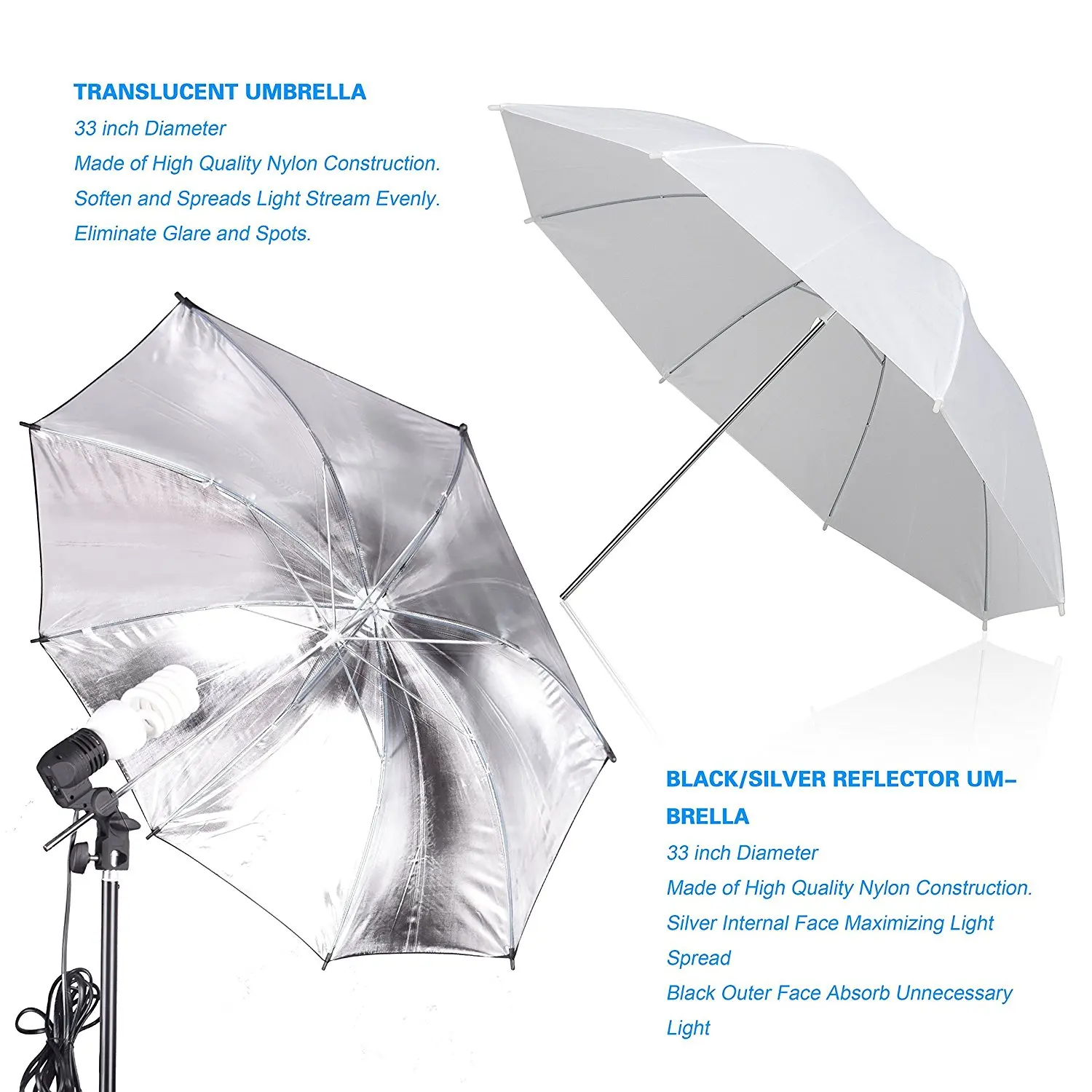 (2) полупрозрачные зонтики и черные/Серебристые отражатели