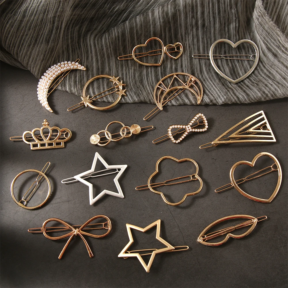 Модные женские аксессуары для волос, треугольная заколка геометрический сплав заколка для волос Луна круг заколка для волос, заколка для волос девушки Укладка волос драгоценный камень