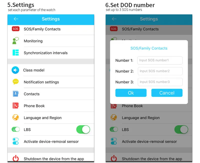 Особенности: 1. Аварийный сигнал SOS 2. Отпечаток пальца 3. Удаленное отключение 4. Игра; Будильник 5. Электронный забор 6. Функция записи камеры 7. Функция USB: 5-контактный разъем micro usb 8. Календарь 9. Отслеживание в реальном времени 10. Отслеживание таргетирования 11. Голосовой домофон 12. Мониторинг в реальном времени 13. Запретить странные звонки 14. Учебная 15. Класс запрещены Вопросы и ответы 1. IMEI штрих-код предоставляется на каждой смарт-задней крышке часов. 2. Клиент может беспокоиться о том, что часы не могут использовать sim-карту вашей страны. Пожалуйста, будьте уверены в покупке, наши часы применимы к национальным sim-картам. 3. Пожалуйста, Сканируйте Описание qr-кода и загрузите SeTracker 2 Посылка 1 x часы Инструкция (1 шт.) 1 x кабель для зарядки 1 x Подарочная коробка