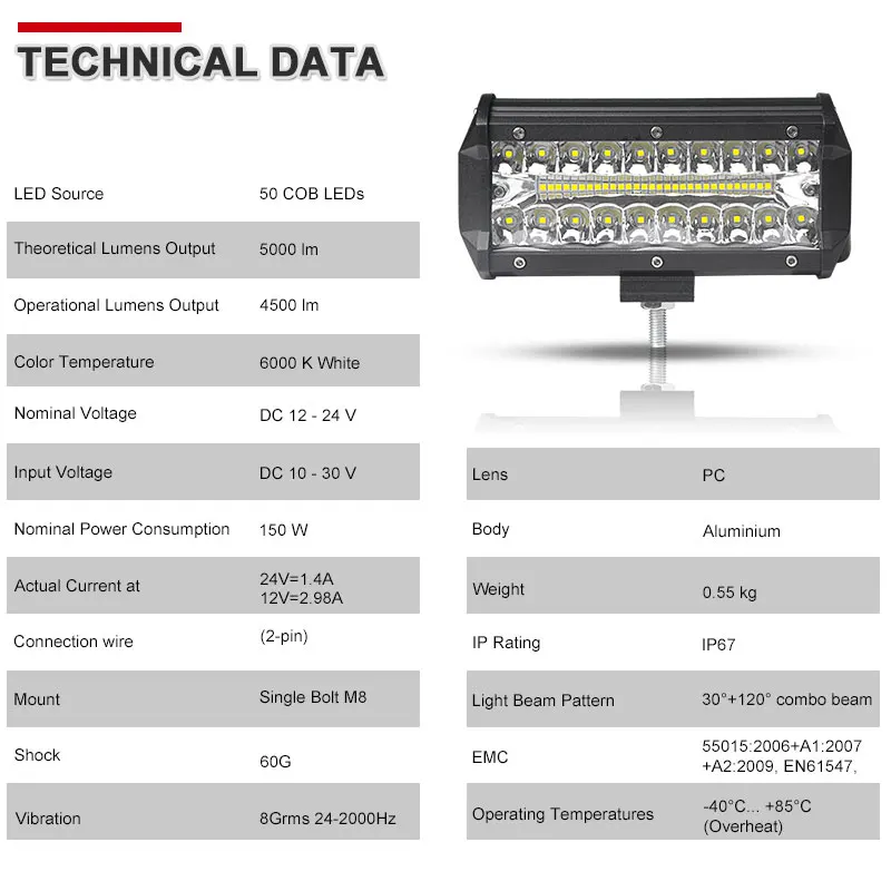 Новый светодиодный светильник для работы, 3 ряда, 50 светодиодный, 7 дюймов, комбинированный светодиодный светильник, бар, 50x3 Вт, для работы, вождения, внедорожника, лодки, автомобиля, трактора, грузовика, 4x4