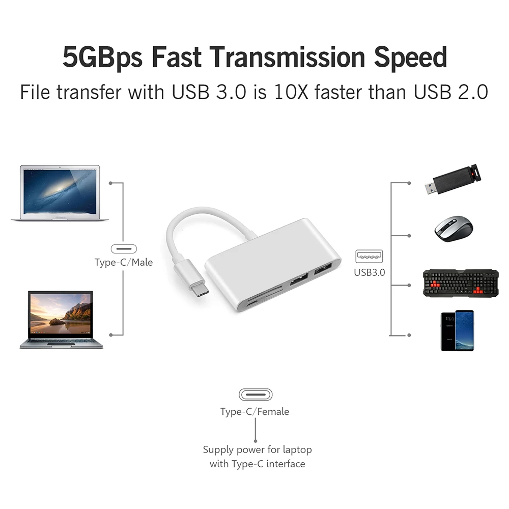 Интерфейс: 1 х USB 3,0 порт, USB 2,0-1 шт., порт, 1 x Тип USB порт Type-C, 1 x SD Разъем карты TF разъем карты (обратите внимание на то, что: этот концентратор может только читать TF карту или sd-карту в одно время)
