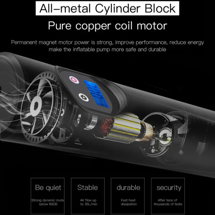 При полной мощности он может непрерывно накачивать 4 шины и выдерживать 365 дней и 25 минут.